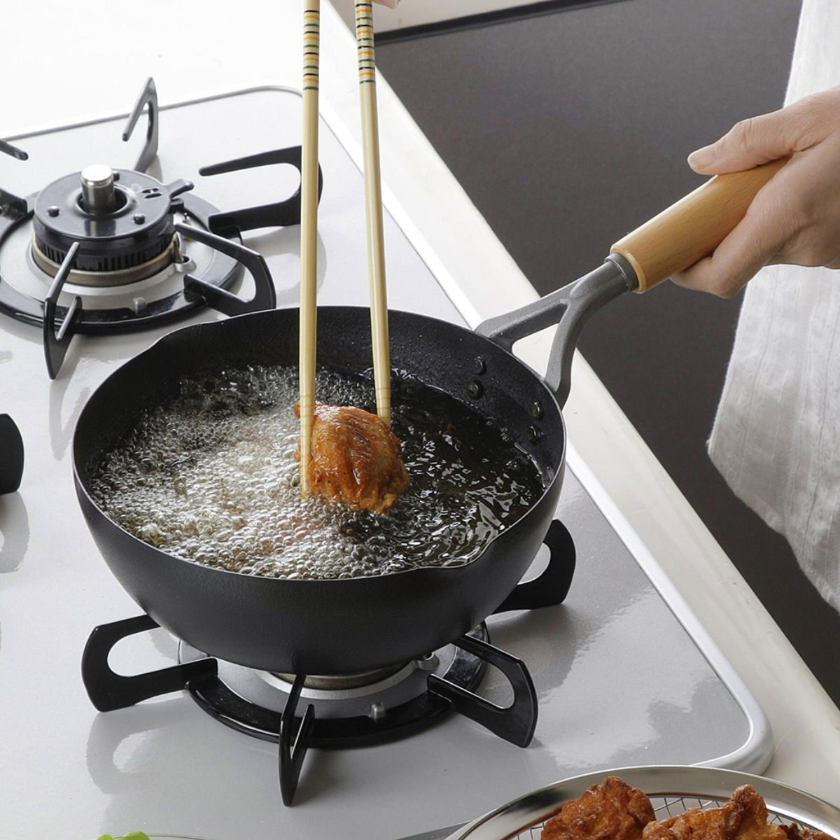 片手鍋のように使えるので、揚げ物調理にもおすすめです。油の温度が下がりにくく、カラッと美味しく仕上がります。
