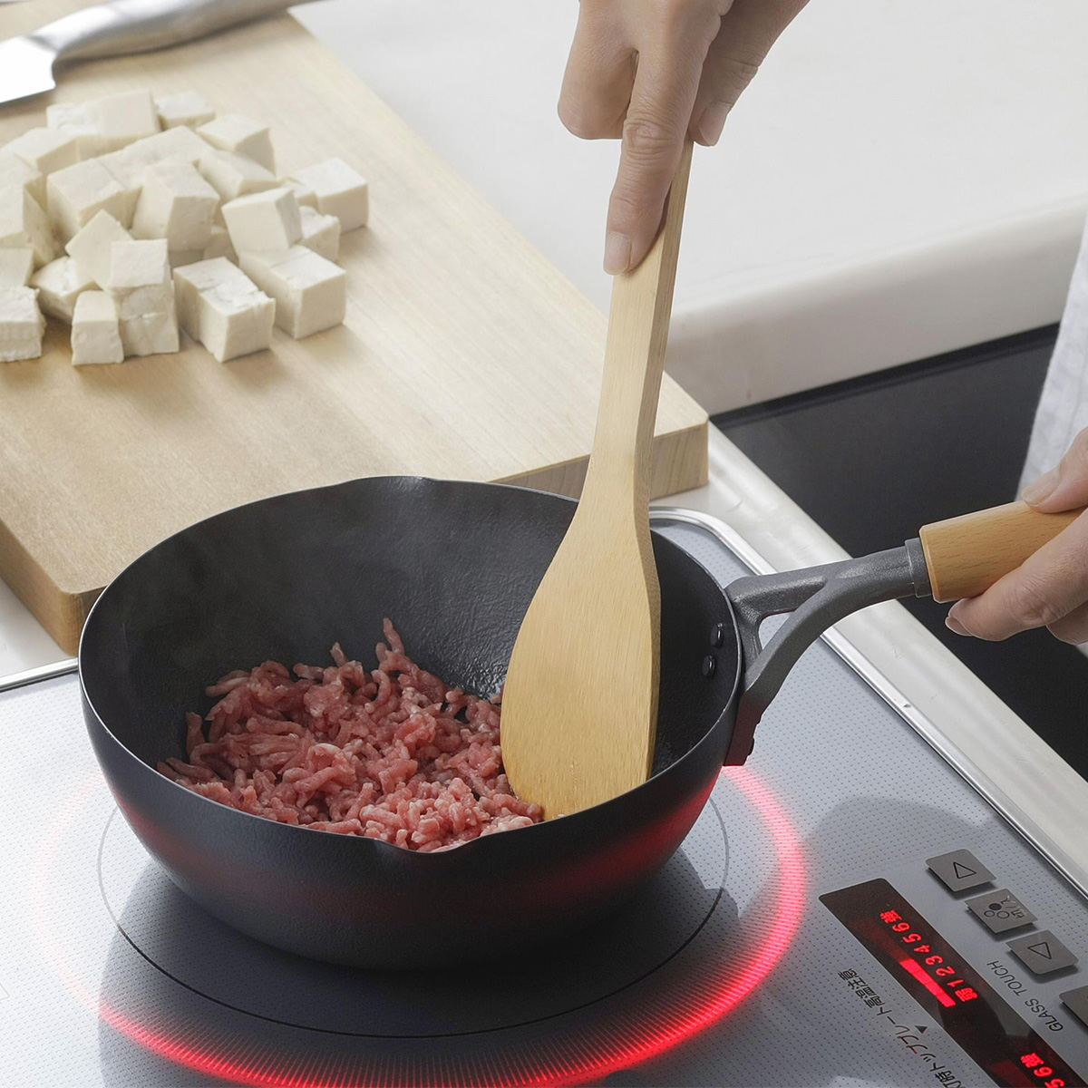 天然木を使用したハンドルは握りやすく、調理中に熱さを感じにくいので快適に調理できます。