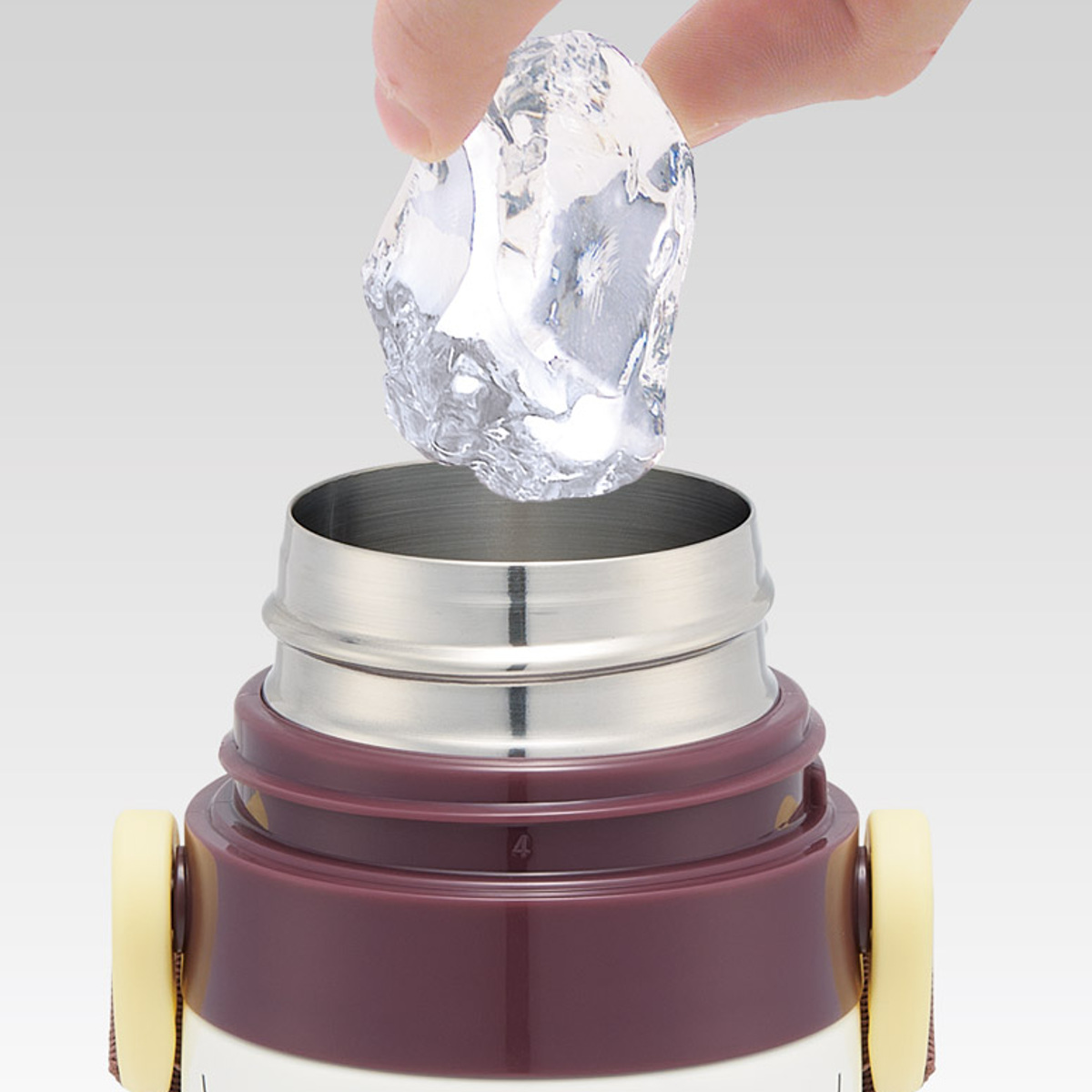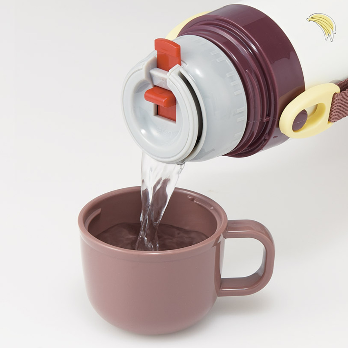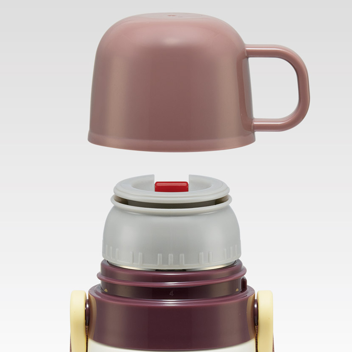 蓋と中栓を付けると、コップ飲みの水筒になります。温かい飲み物や冷たい飲み物にもご使用いただけます。