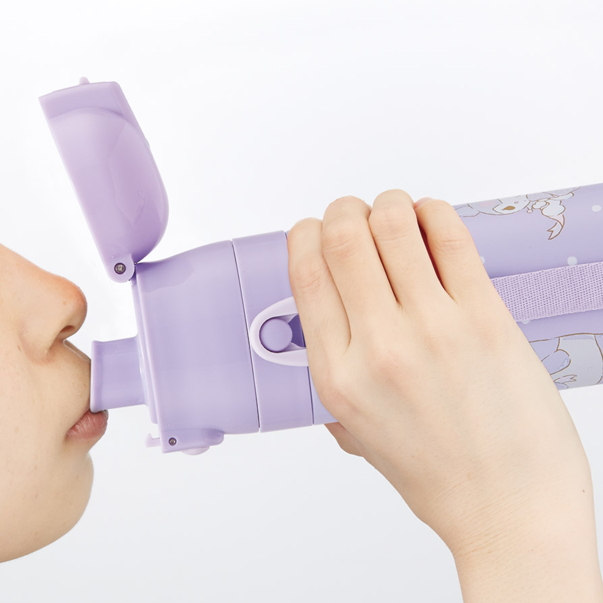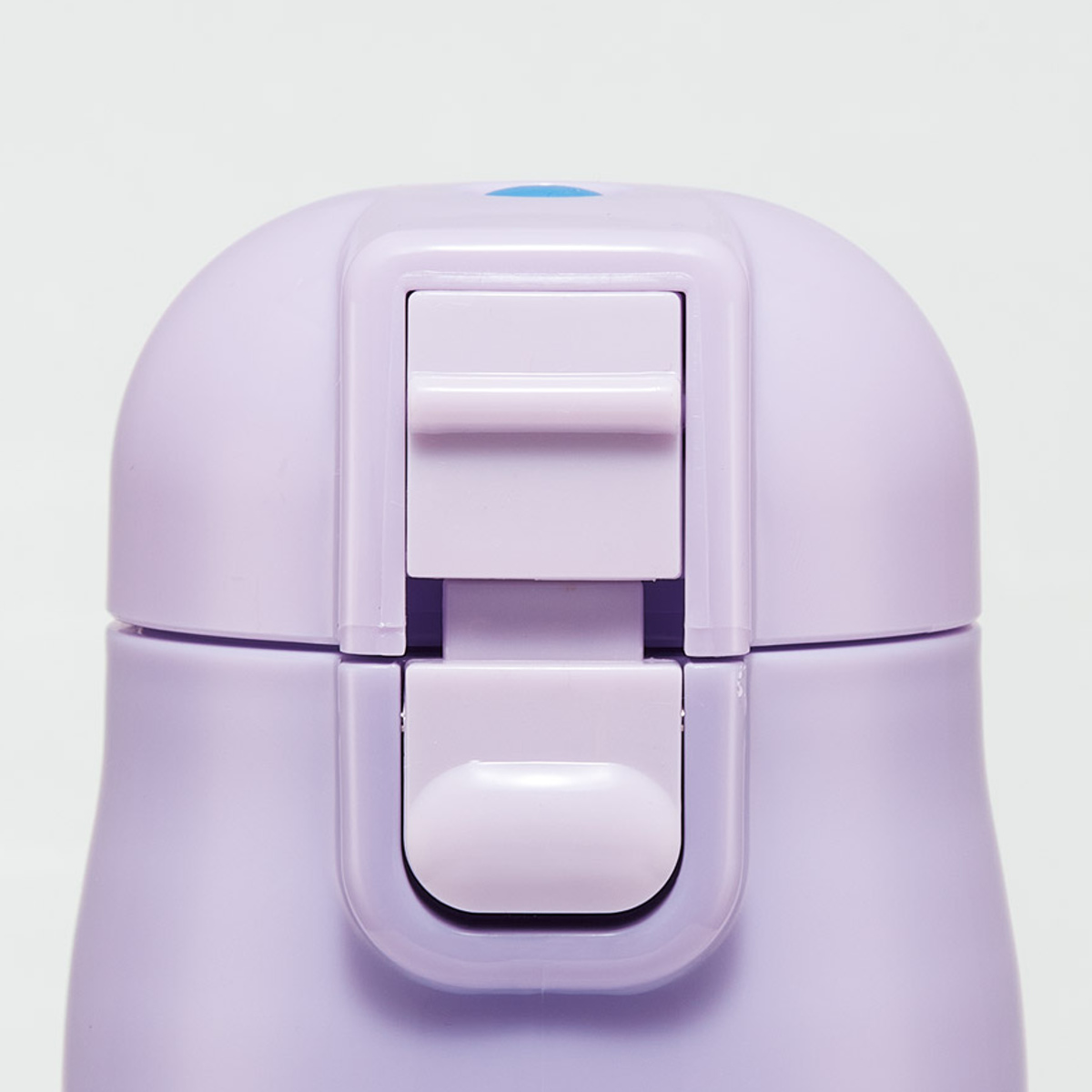水筒の蓋はボタンを押すだけで開けることができるワンタッチ式です。飲み終わったら蓋をカチッと閉めるだけなので、小さなお子様でも簡単に開閉できます。