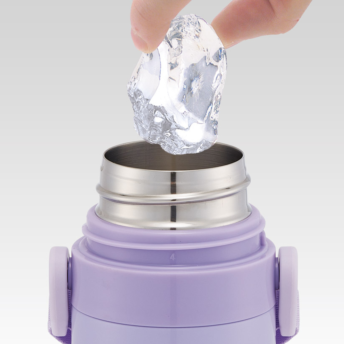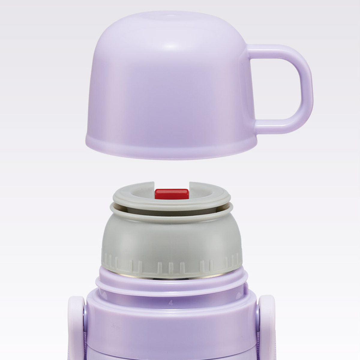 蓋と中栓を付けると、コップ飲みの水筒になります。温かい飲み物や冷たい飲み物にもご使用いただけます。