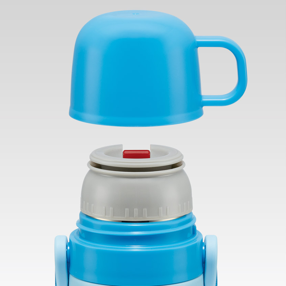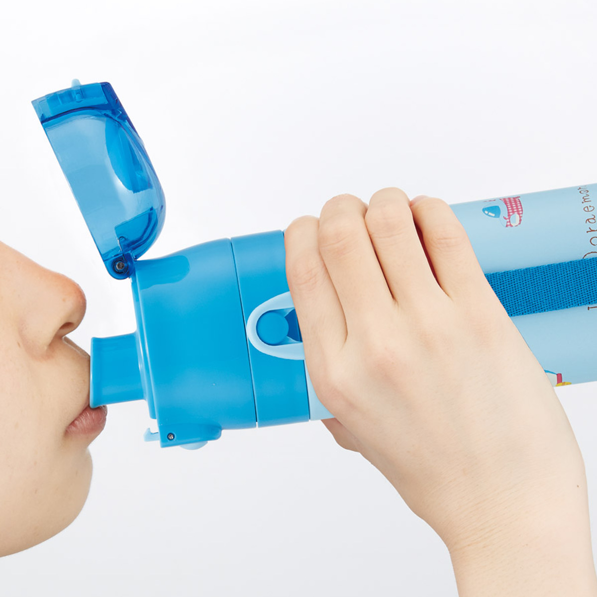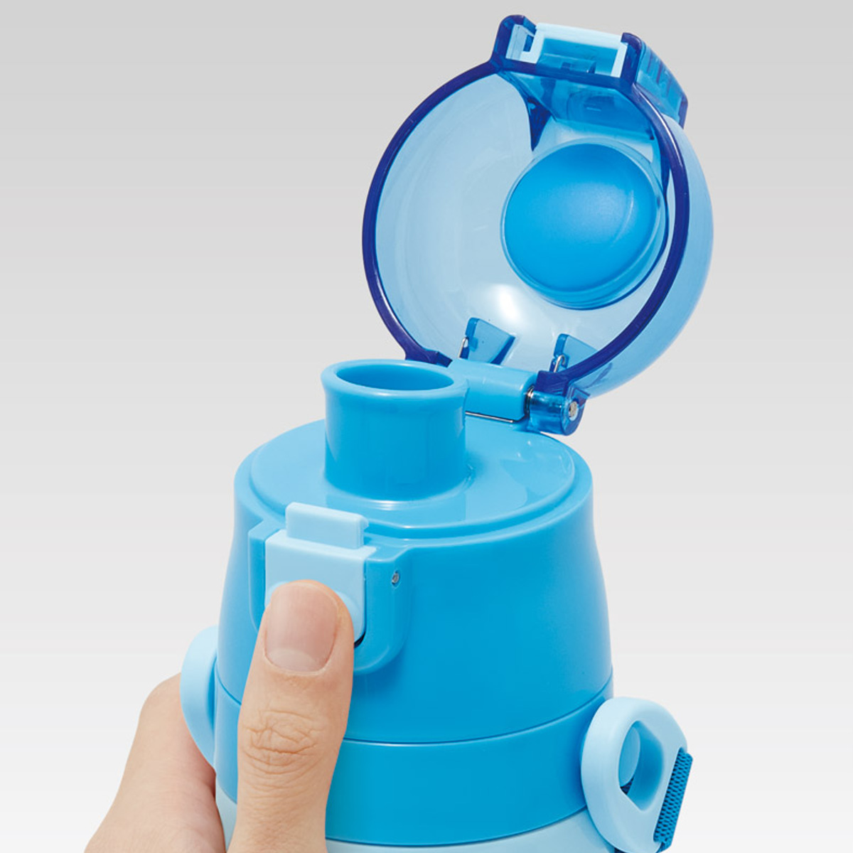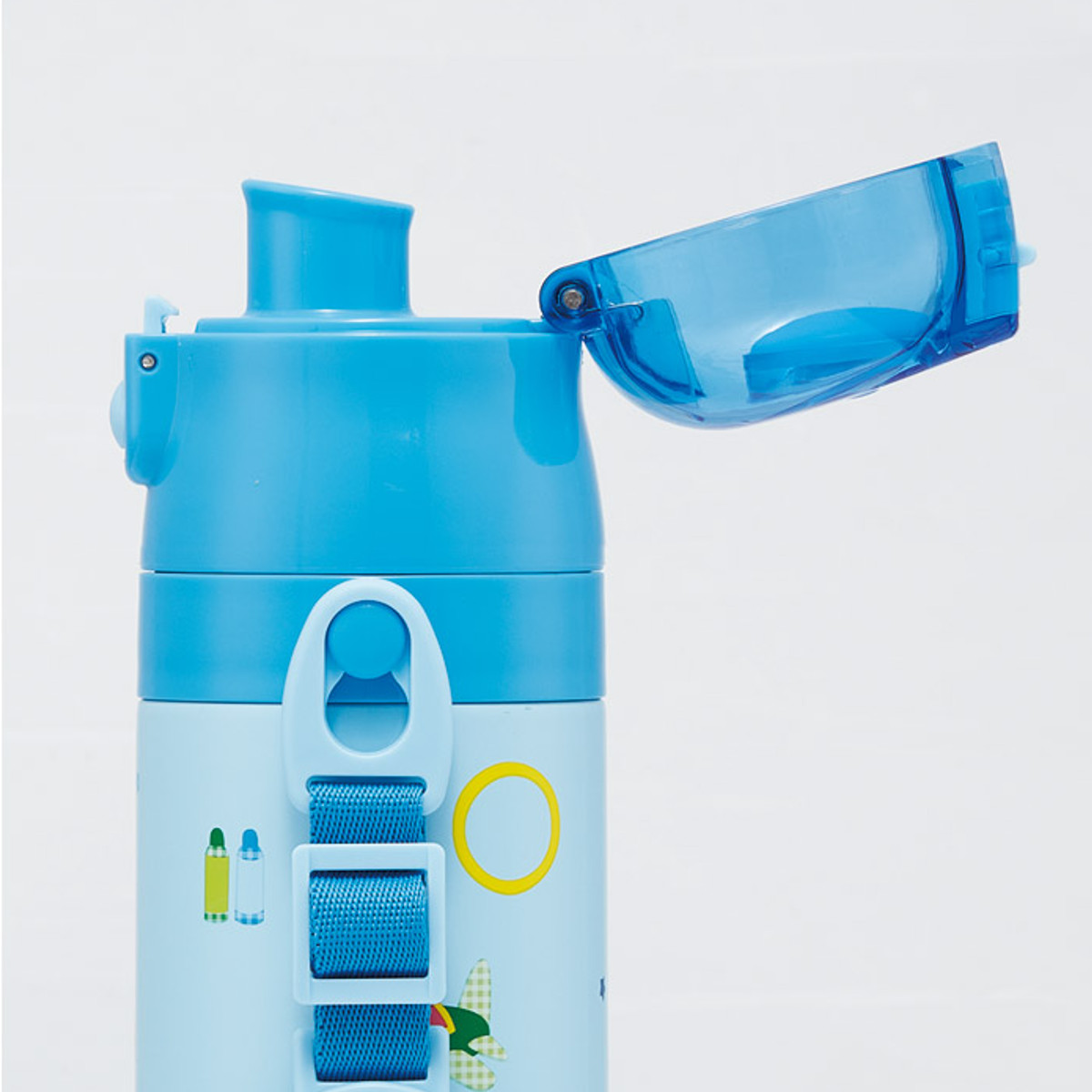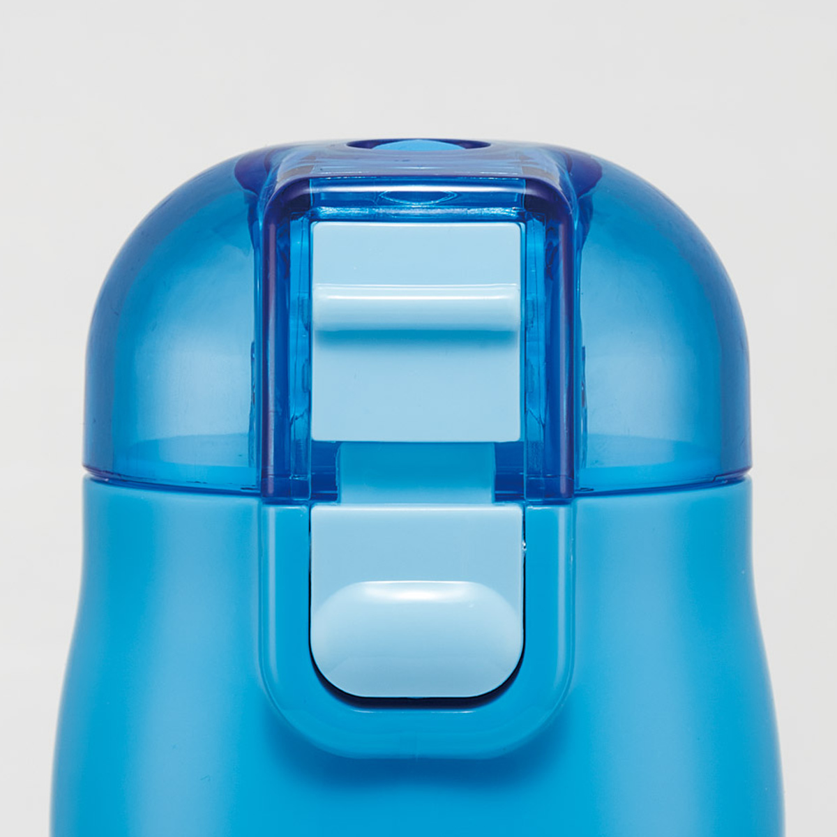 水筒の蓋はボタンを押すだけで開けることができるワンタッチ式です。飲み終わったら蓋をカチッと閉めるだけなので、小さなお子様でも簡単に開閉できます。
