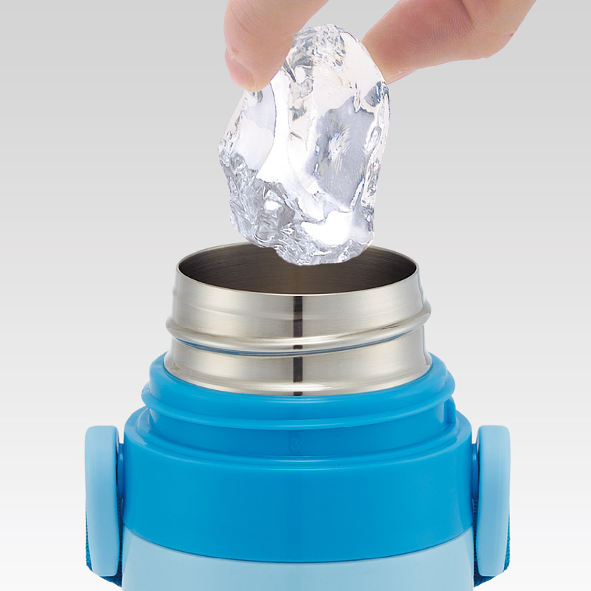 蓋と中栓を付けると、コップ飲みの水筒になります。温かい飲み物や冷たい飲み物にもご使用いただけます。