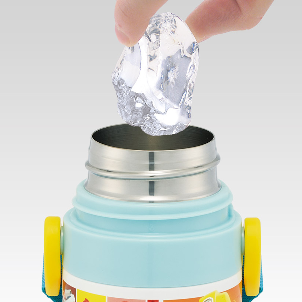 蓋と中栓を付けると、コップ飲みの水筒になります。温かい飲み物や冷たい飲み物にもご使用いただけます。