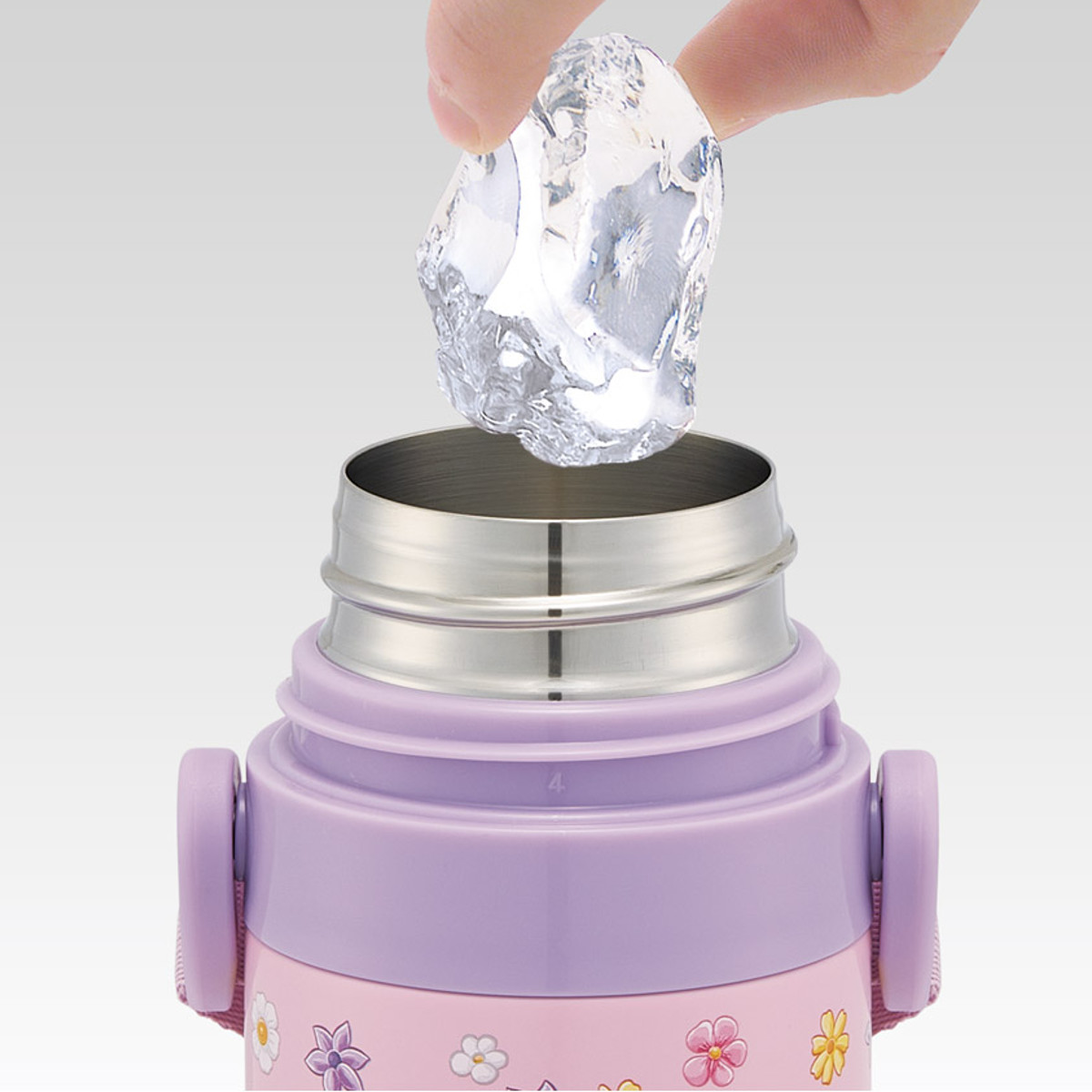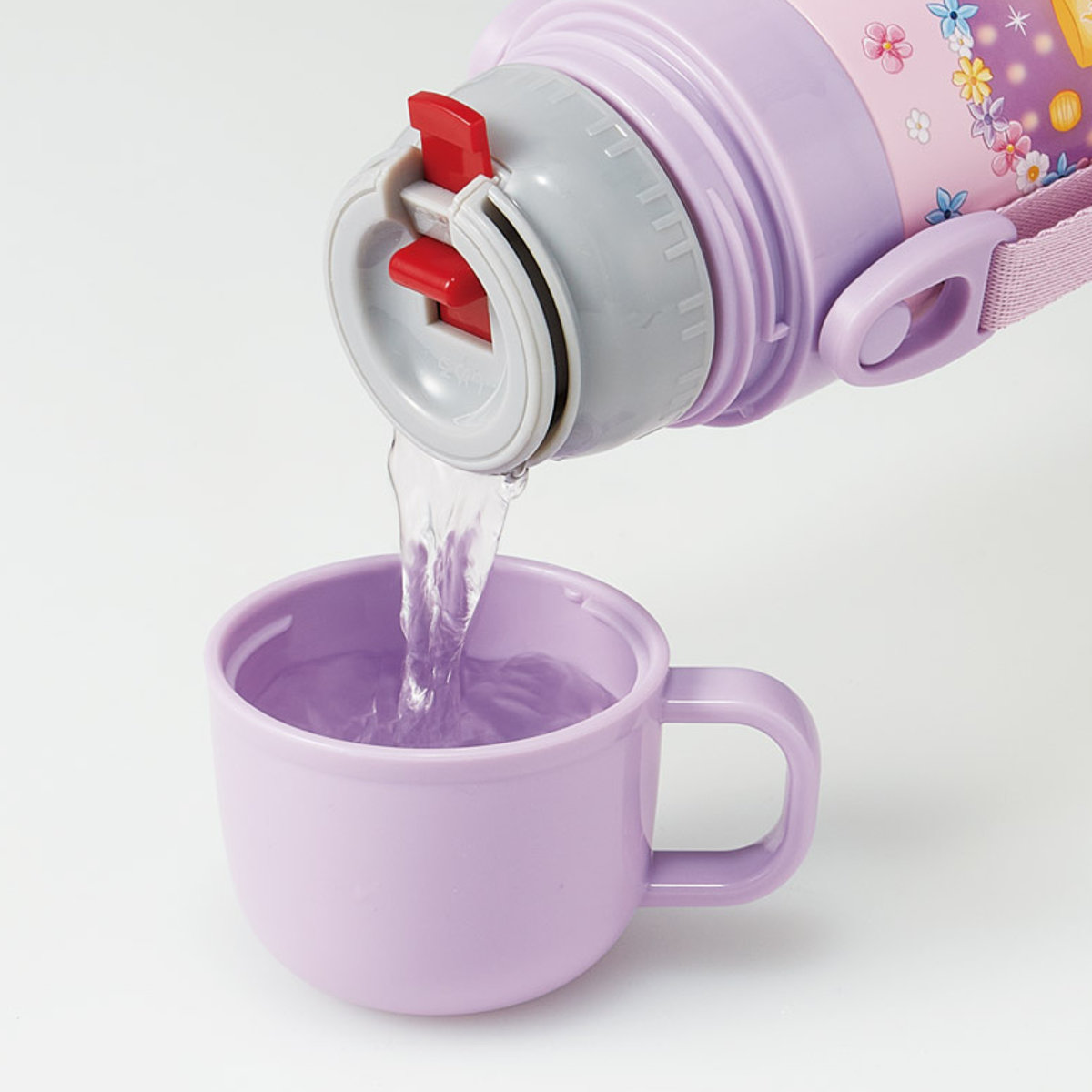 蓋と中栓を付けると、コップ飲みの水筒になります。温かい飲み物や冷たい飲み物にもご使用いただけます。