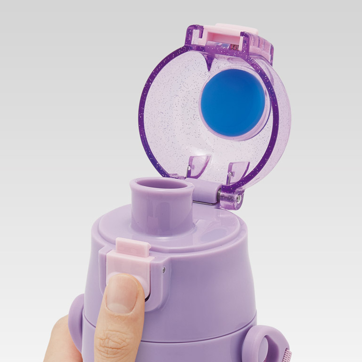 水筒の蓋はボタンを押すだけで開けることができるワンタッチ式です。飲み終わったら蓋をカチッと閉めるだけなので、小さなお子様でも簡単に開閉できます。