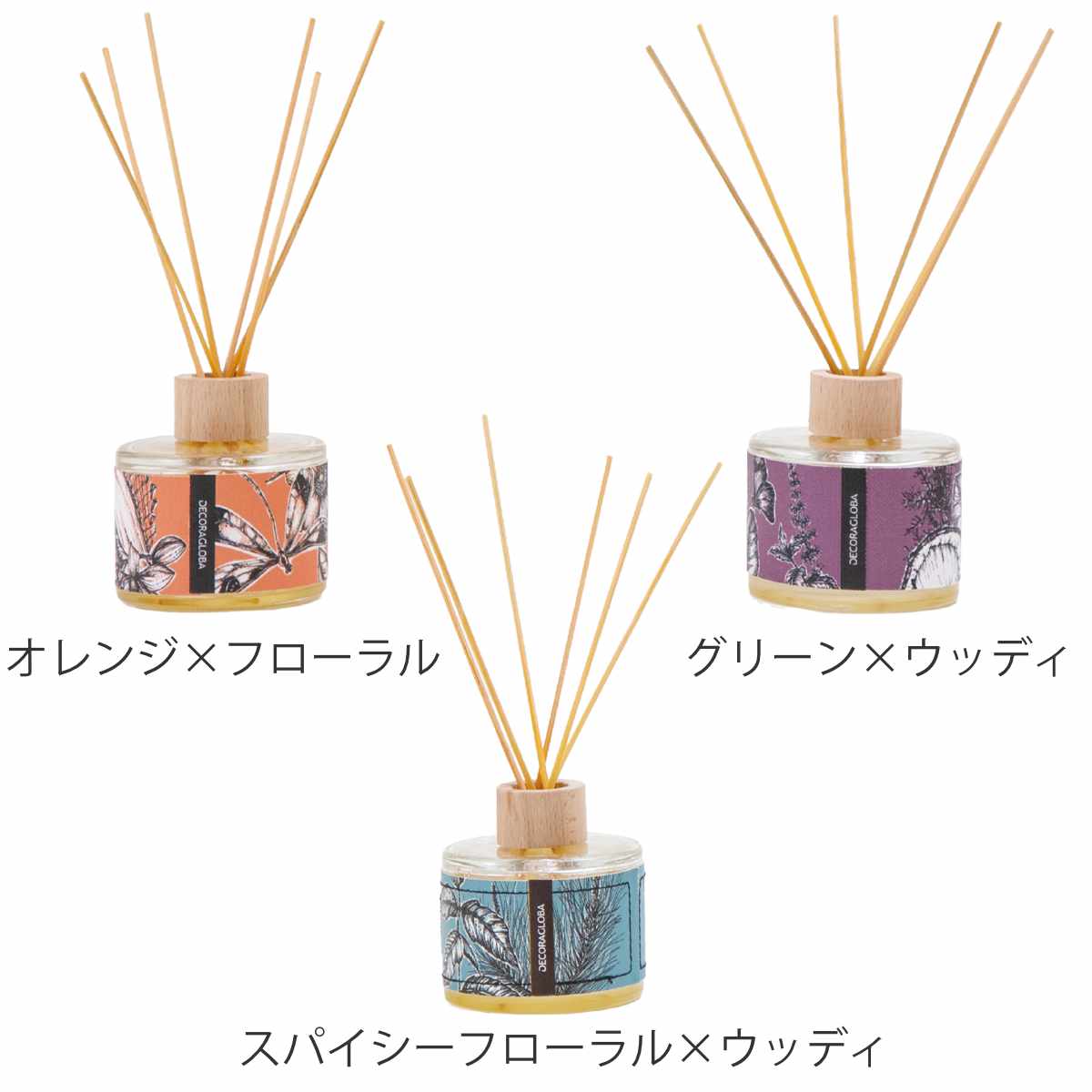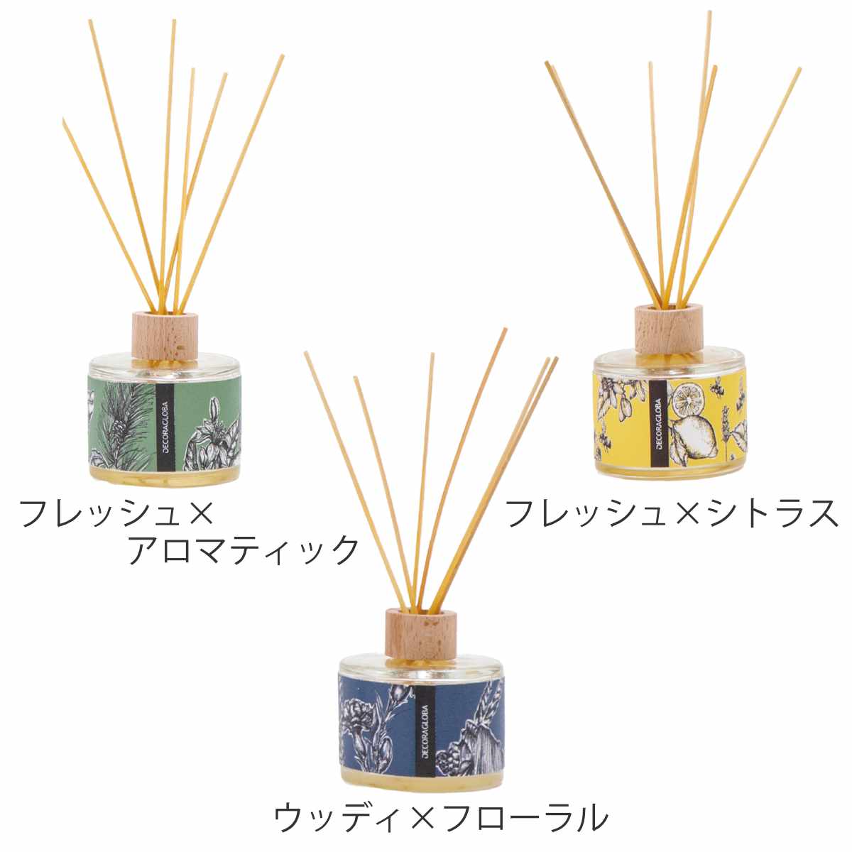 長く伸びたリードから心地よい香りが広がるDECORAGLOBAのディフューザーです。それぞれの香りをイメージしたおしゃれなカラーデザインで、玄関やリビング、寝室など、どこに置いても美しく収まります。パッケージ入りなので、大切な方へのギフトにもおすすめです。