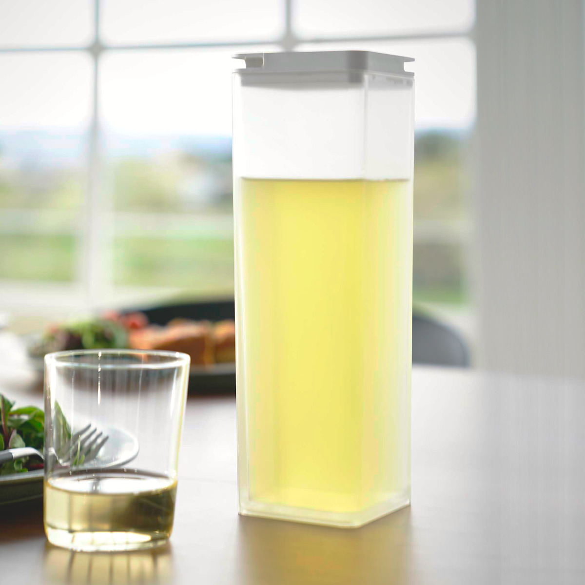 容量1.2Lのスリムな冷水筒 同色2個セットです。1人暮らしの方やコンパクトに収納したい方におすすめです。ゆっくりと注ぎ口が下になるように傾けるだけで簡単に注ぐことができます。