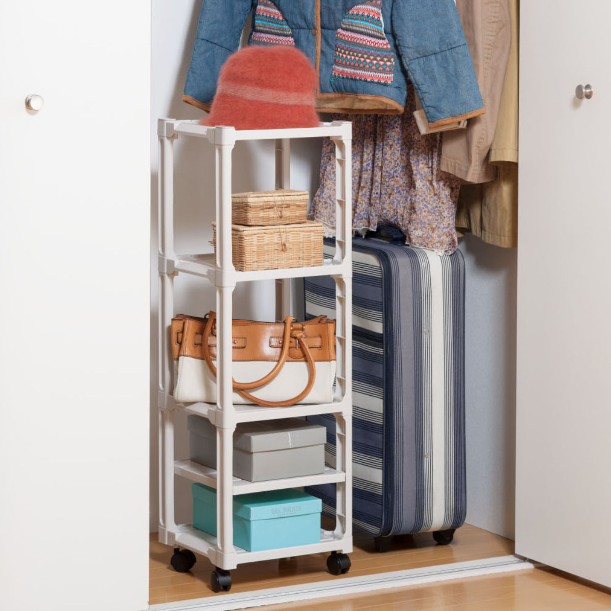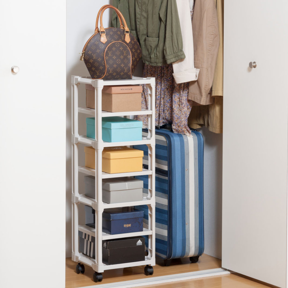 可動棚を外すことで棚の間隔を広くすることができ、大きなカバンやショートブーツなど高さがあるものも収納が可能です。