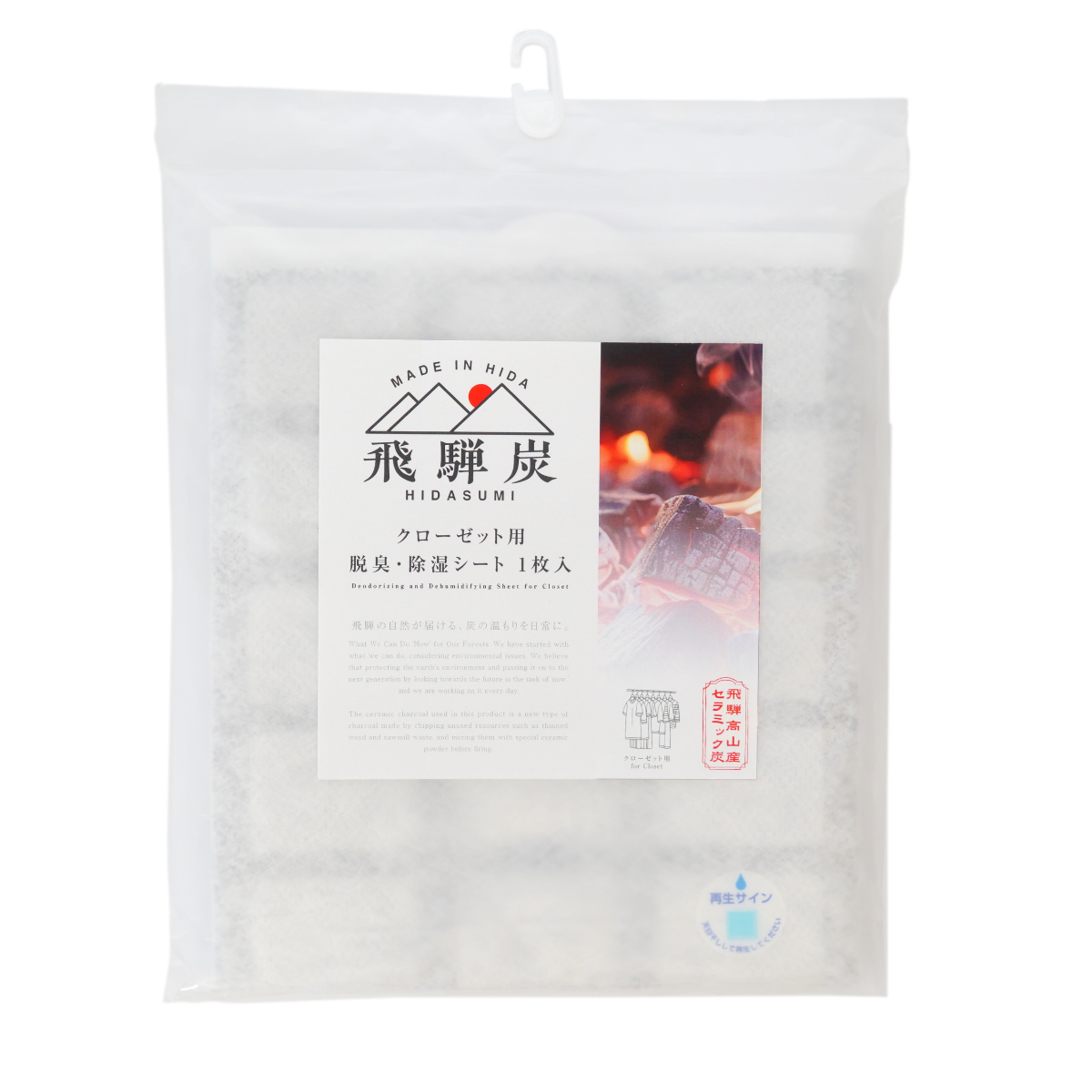 飛騨炭を使ったクローゼット用脱臭除湿シート