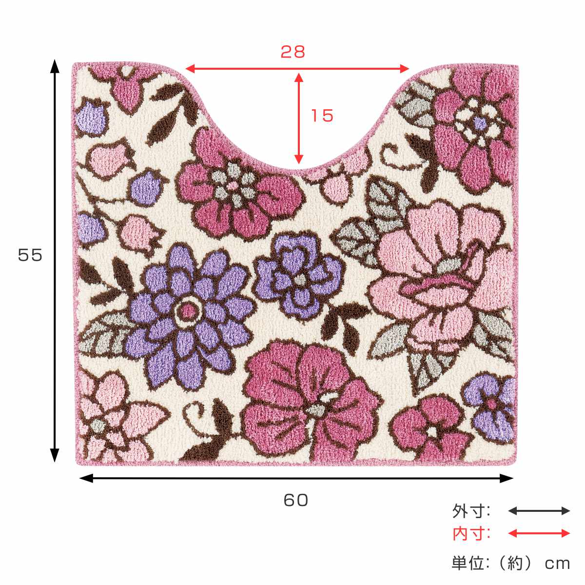 大きな花柄が目を惹くトイレマット 55×60cm