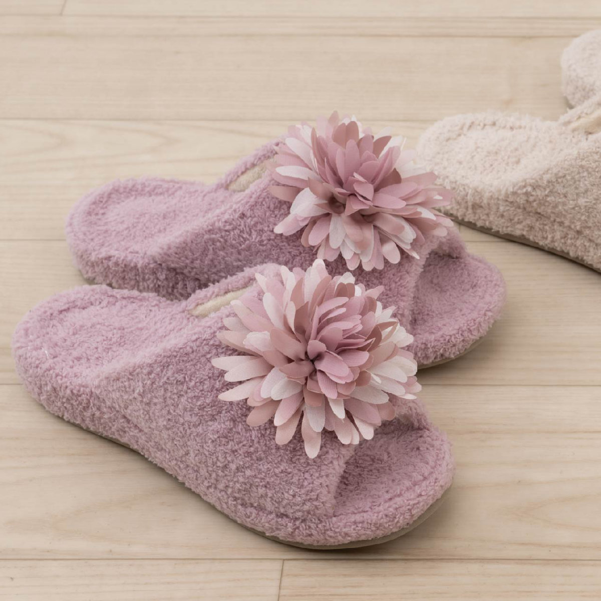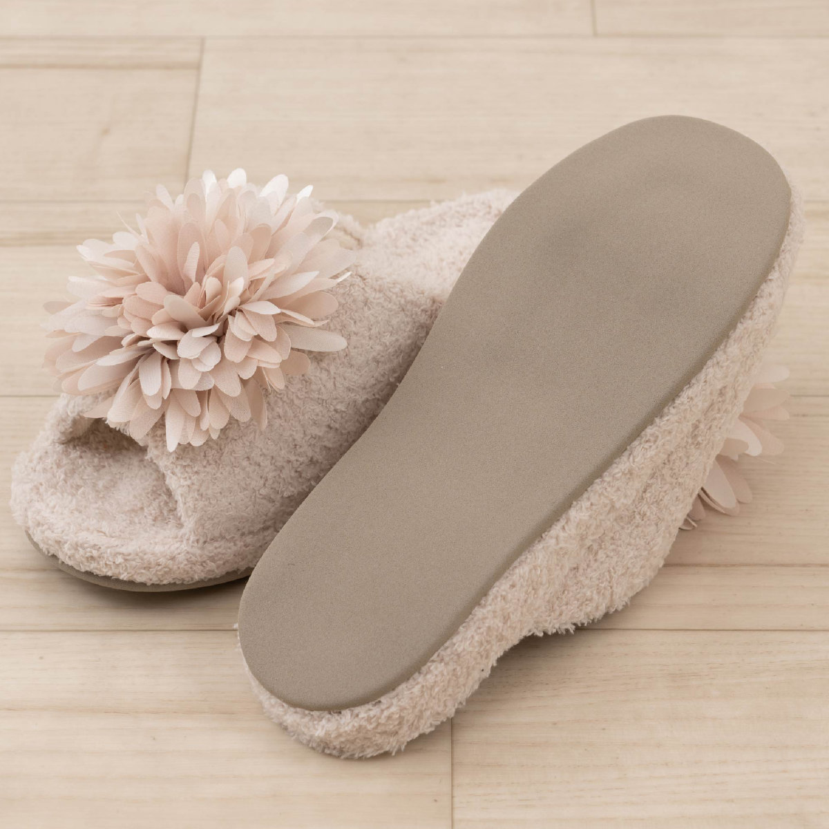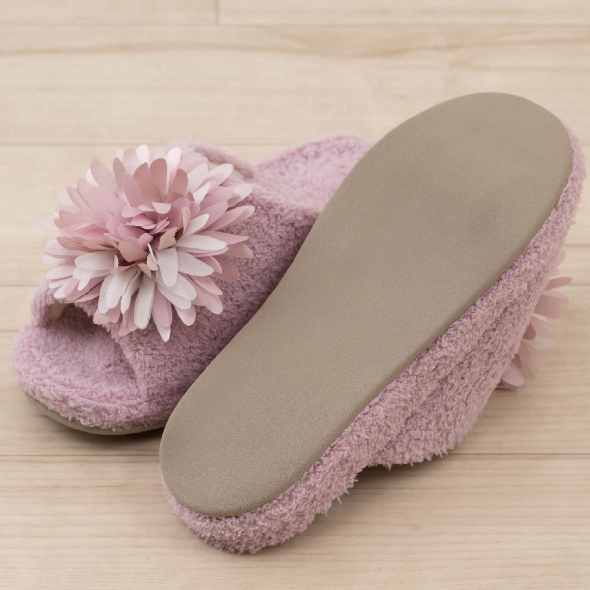| 材質 | 甲表・中板:ポリエステル 甲裏:パイル/綿、地糸/ポリエステル 花モチーフ:ポリエステル 底材:PVC |