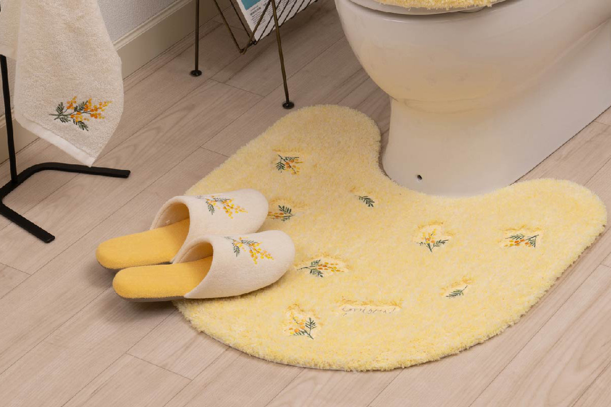 シリーズ「yorisou」の「スイートミモザ」、「スイートラベンダー」トイレタリーは、2種類の糸をミックスしたボリュームあるベースに、花刺繍を散りばめたデザインが特徴的です。フタカバー、トイレマット、ペーパーホルダーカバー、スリッパ、バスマットで揃えられ、統一感のある空間が作れます。