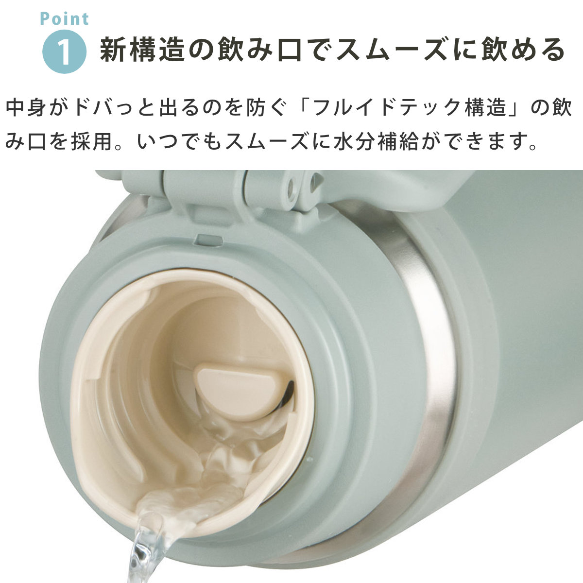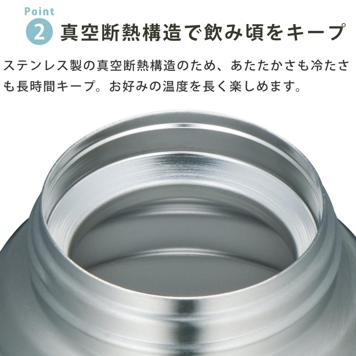 | 材質 | 内びん:ステンレス鋼 胴部:ステンレス鋼(アクリル樹脂塗装) フタ・ループ・せん本体・飲み口:ポリプロピレン フタパッキン・ボディリング・せんパッキン:シリコーンゴム |