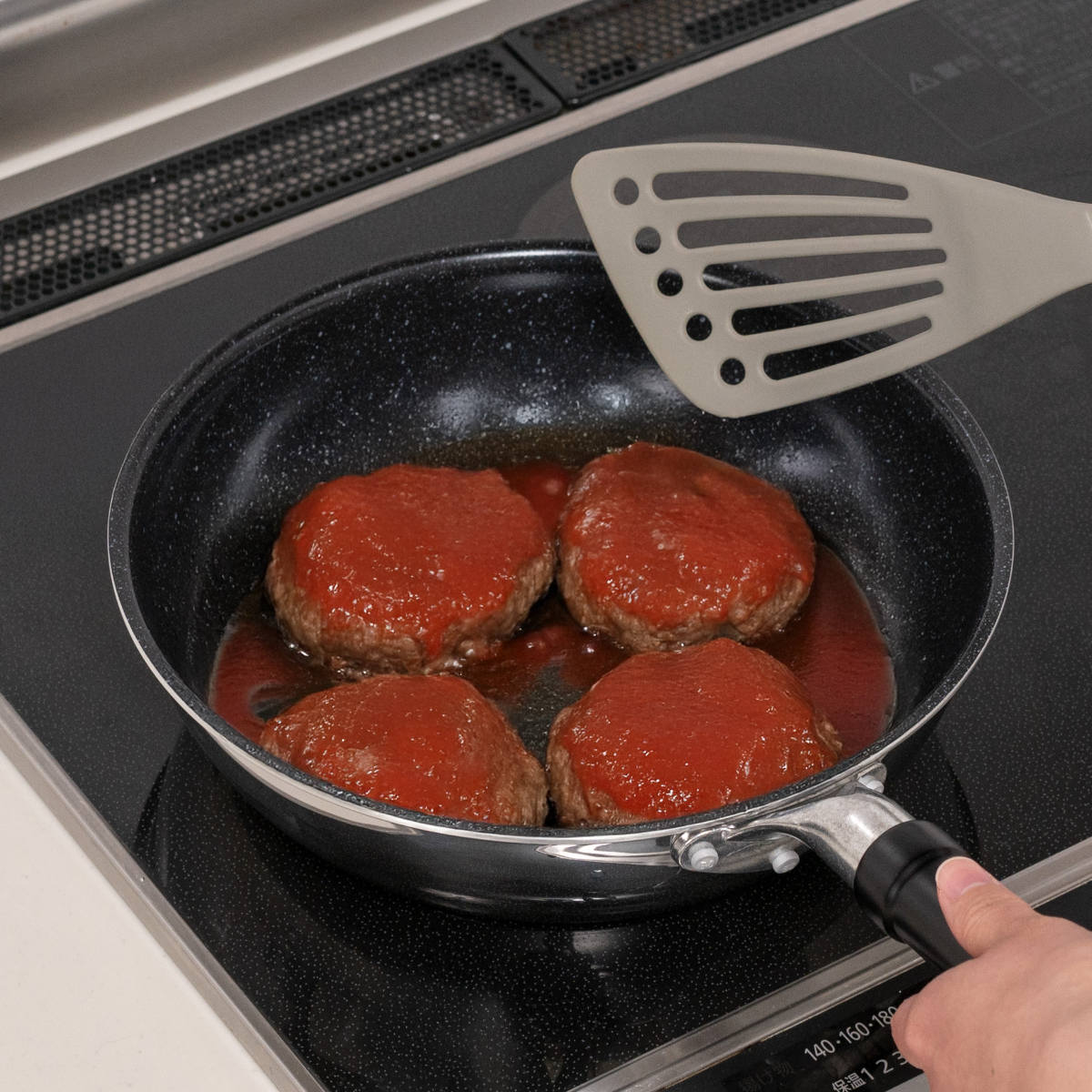 焼き物、炒め物はもちろん、煮込む・茹でる調理にも対応できる深型フライパンです。汁気のある料理や、チャーハンなどの調理にもぴったり。これ1つで幅広いメニューが作れるので、調理器具を増やしたくない方にもおすすめです。