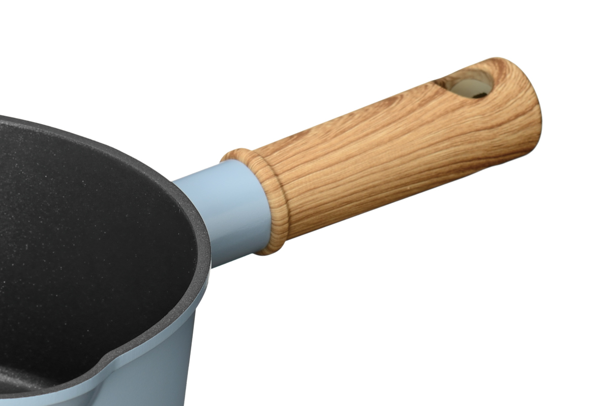 | 材質 | 本体:アルミニウム合金 底面:ステンレス鋼 内面:ふっ素樹脂加工 外面:焼付塗装 ハンドル:ベーク(シリコン塗装木目調) |