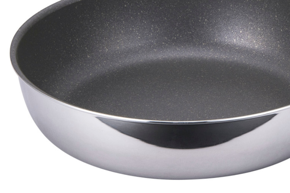 内面には、ダイキンの「Silkware SD」を採用しています。表面に凸凹をつけることによって耐摩耗性に優れ、金属ヘラも使えてこびりつきにくく調理が快適です。