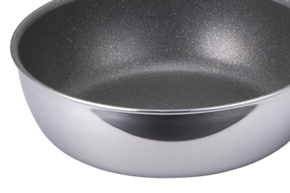 内面には、ダイキンの「Silkware SD」を採用しています。表面に凸凹をつけることによって耐摩耗性に優れ、金属ヘラも使えてこびりつきにくく調理が快適です。