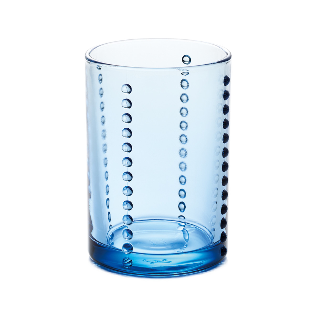 1966年に柳宗理がデザインしたグラスを復刻しました。一列に並んだつぶが、滑り止めの役割と共にデザインの特徴にもなっています。軽やかで主張しすぎないデザインで、 合わせるものを選ばずどんな器にもスッと馴染みます。