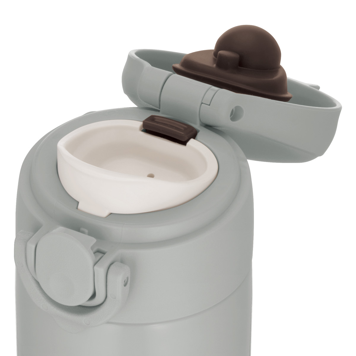 使いたい時にワンタッチで簡単に開けられて、お湯が注ぎやすい形状です。ロックリング付きなので、持ち運ぶ時も安心です。
