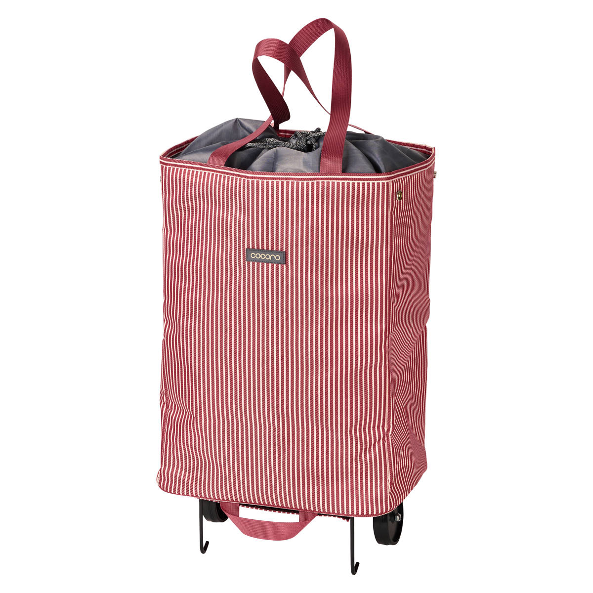 大き目のタイヤで安定感があります。自立するので荷物の出し入れもしやすく、お買い物中の休憩の際にも置き場所に困りません。