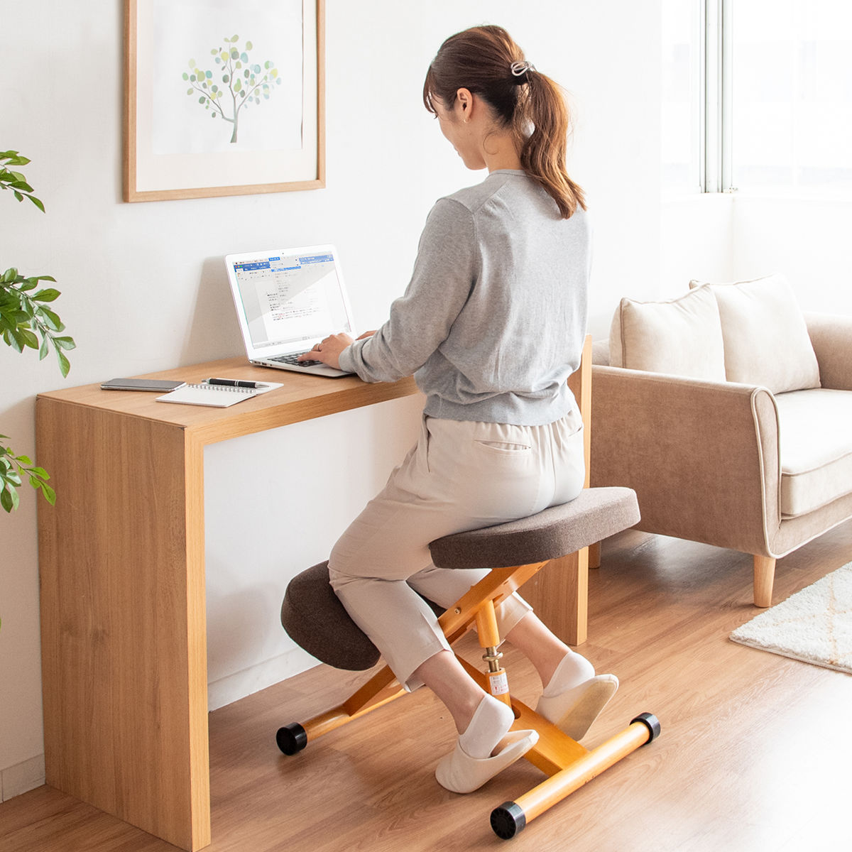 斜めの座面が立ち姿勢のように骨盤が立つので自然と背中がS字カーブを描き、理想的な姿勢を作り出せるプロポーションチェア。正しい姿勢で座ることで集中力がアップすると言われています。