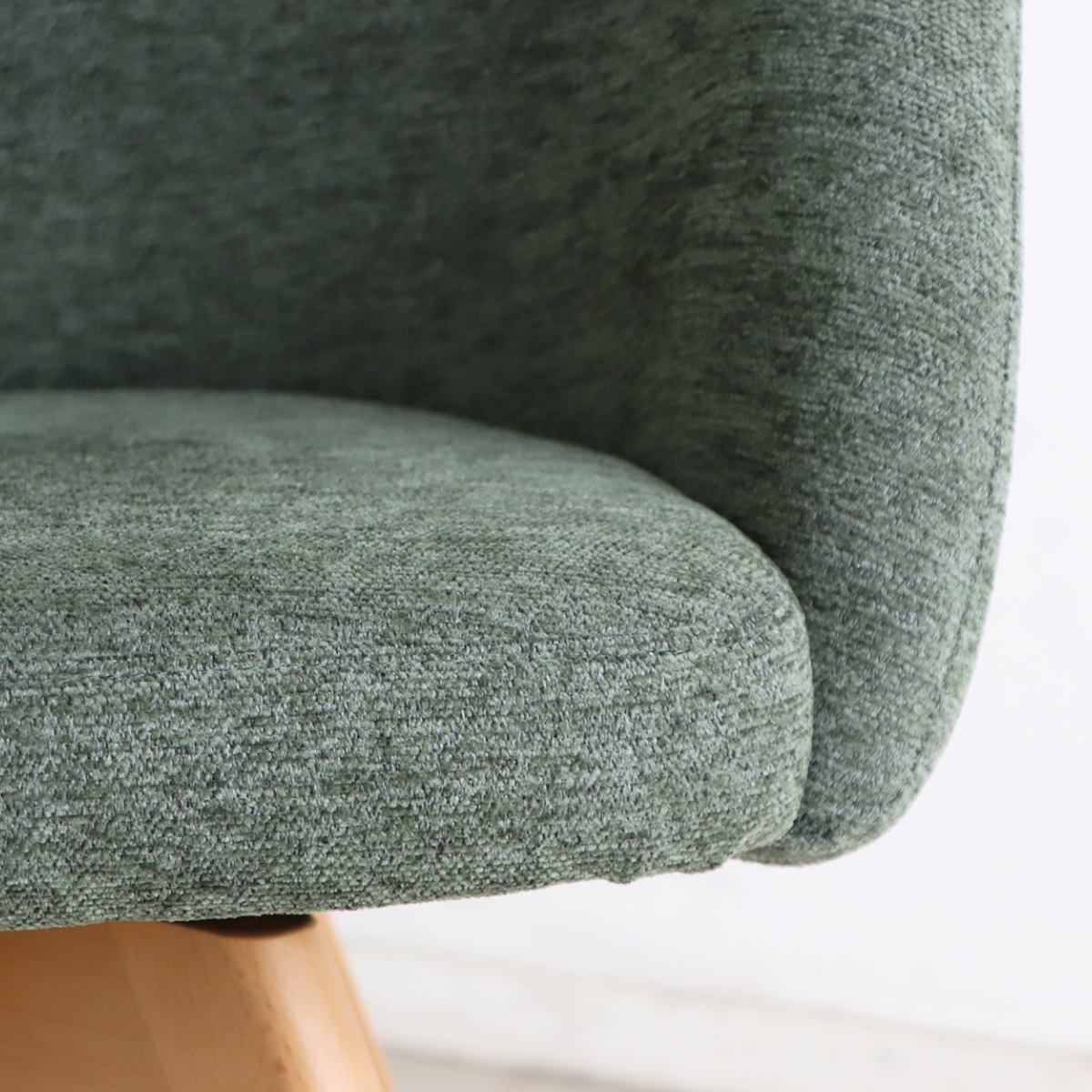 丸いフォルムは可愛さを演出しながらも、身体を優しく包み込む設計になっています。木脚とのバランスも良く、オレンジとグリーンの2色展開でお好きなカラーをお選びいただけます。アクセントになるカラーリングでお部屋を彩ってくれます。