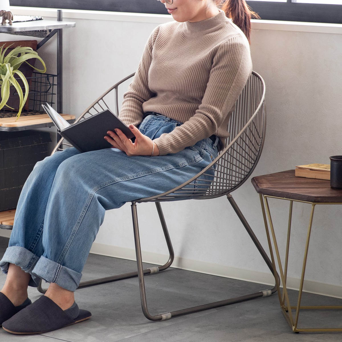 少し使い込んだような、ヴィンテージ感のあるワイヤーの質感がお部屋に溶け込むように馴染みます。