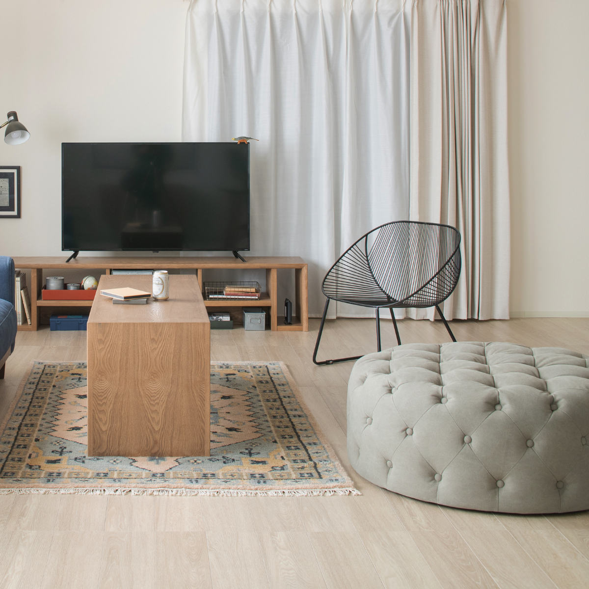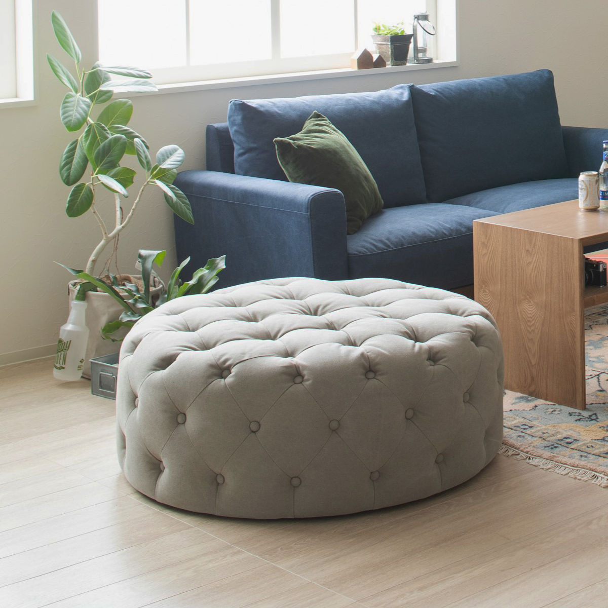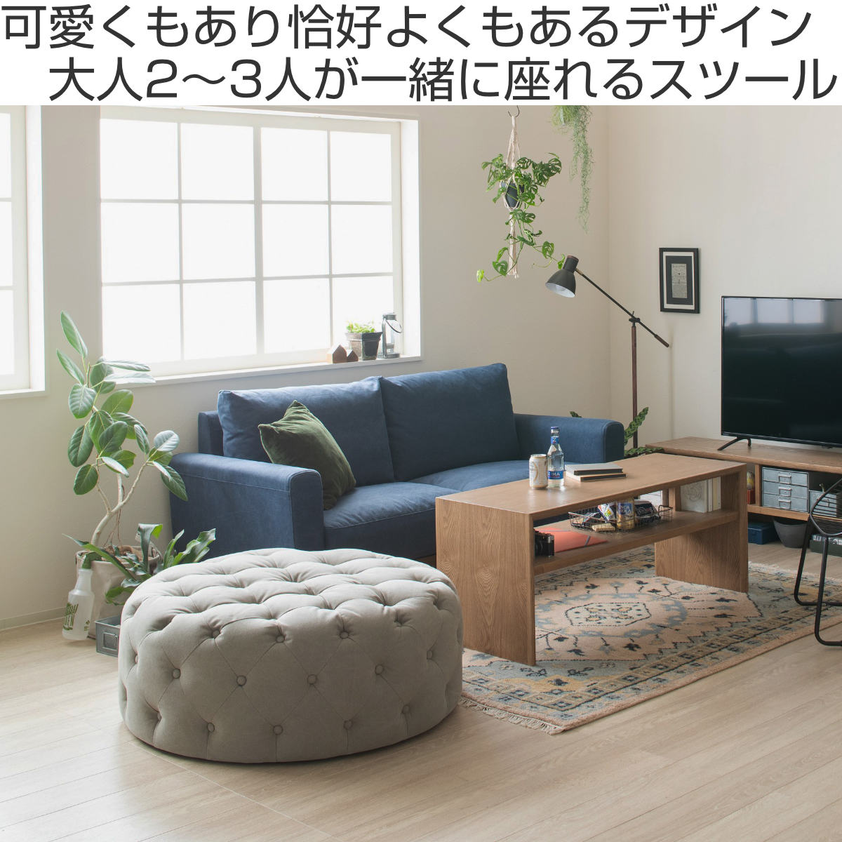 大人2~3人が一緒に座ることができる直径約100cmのスツールです。可愛くもあり恰好よくもあるデザインで、男性があぐらをかいて座ることもできるサイズ感です。軽食をとったりコーヒーを飲んだりしてゆったりとくつろいでいただけます。