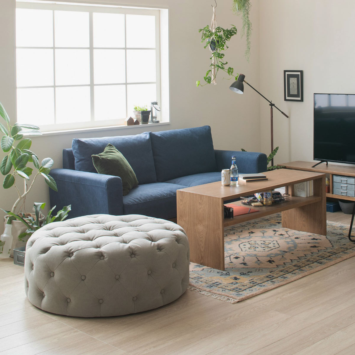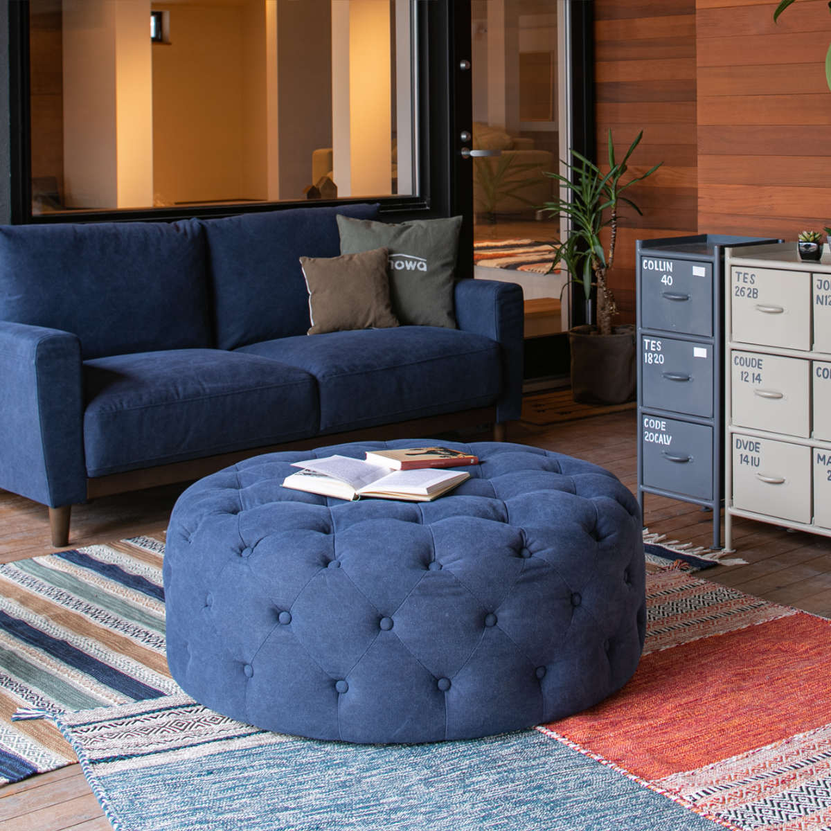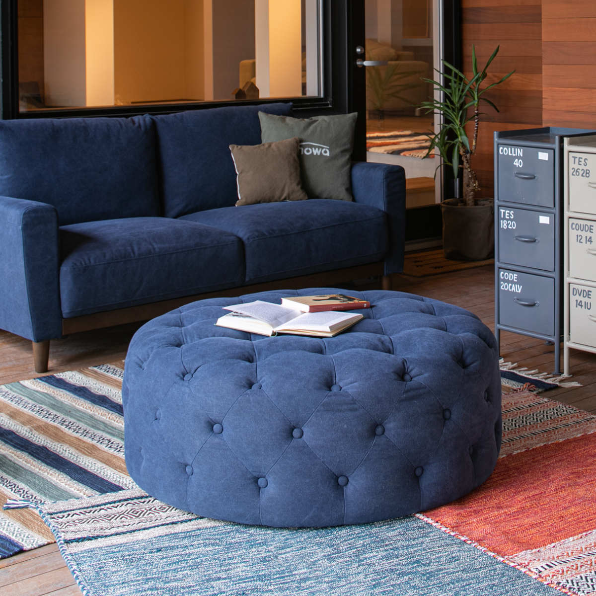 生地にはストーンウォッシュ風の加工を施した帆布を使用しています。使い込んだような質感がお部屋に洒落な空間を演出してくれます。