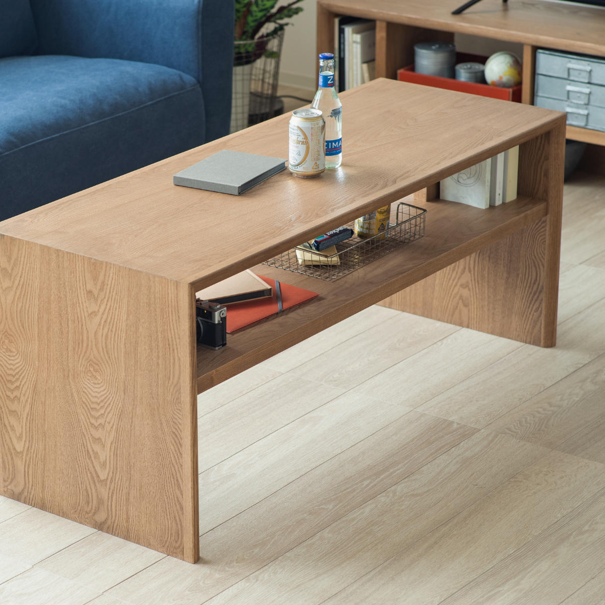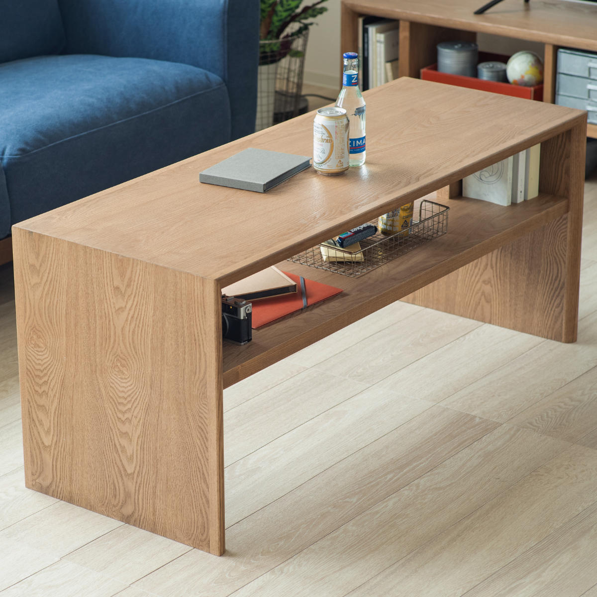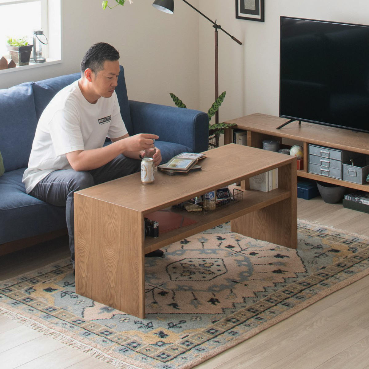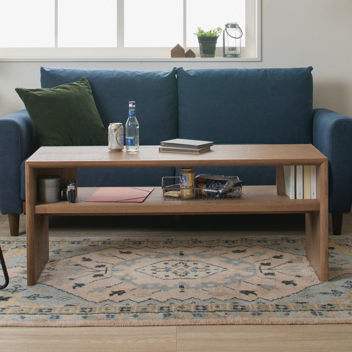 天板下にはテーブル周りの小物の収納に便利な棚が付いています。新聞や雑誌、ティッシュケースやリモコンなどをさっと片づけることができます。