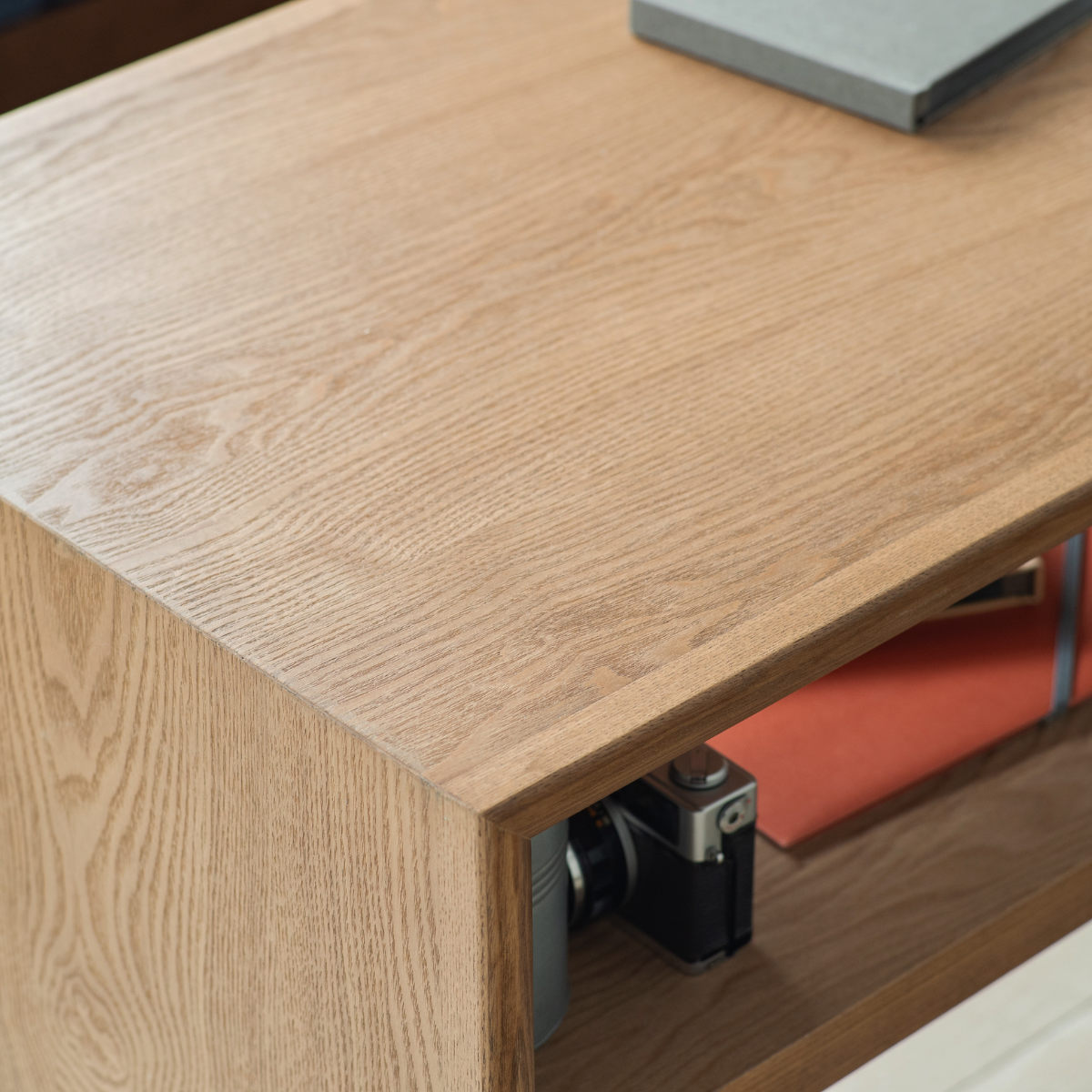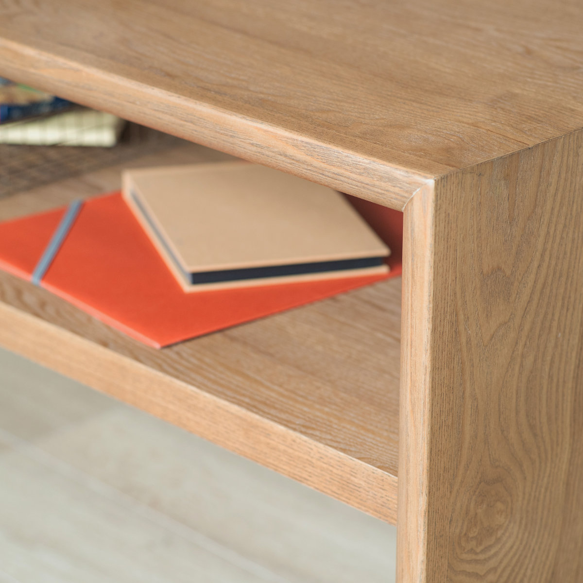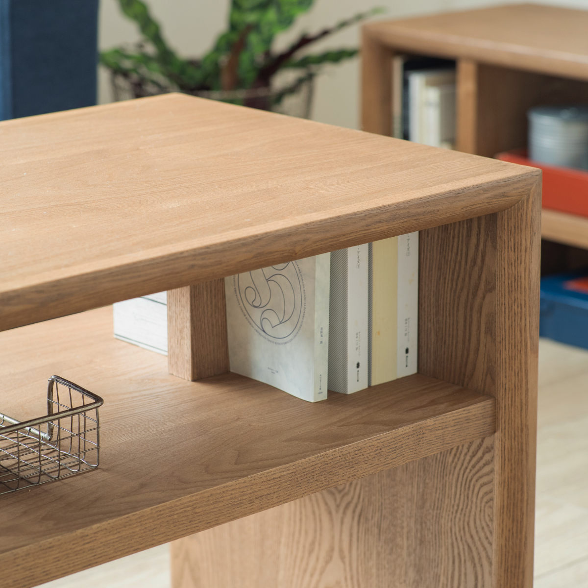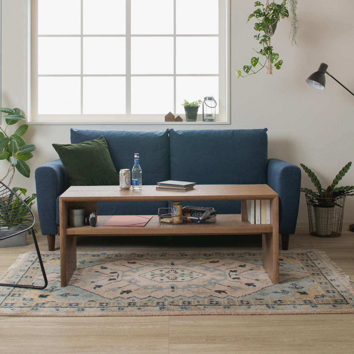 天板下にはテーブル周りの小物の収納に便利な棚が付いています。新聞や雑誌、ティッシュケースやリモコンなどをさっと片づけることができます。