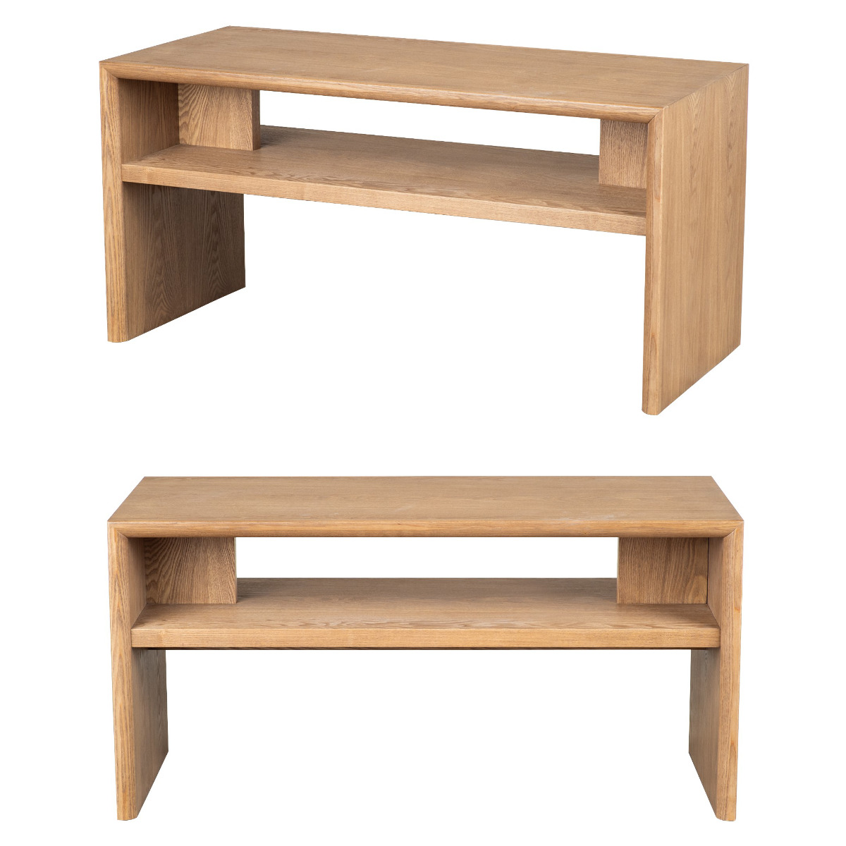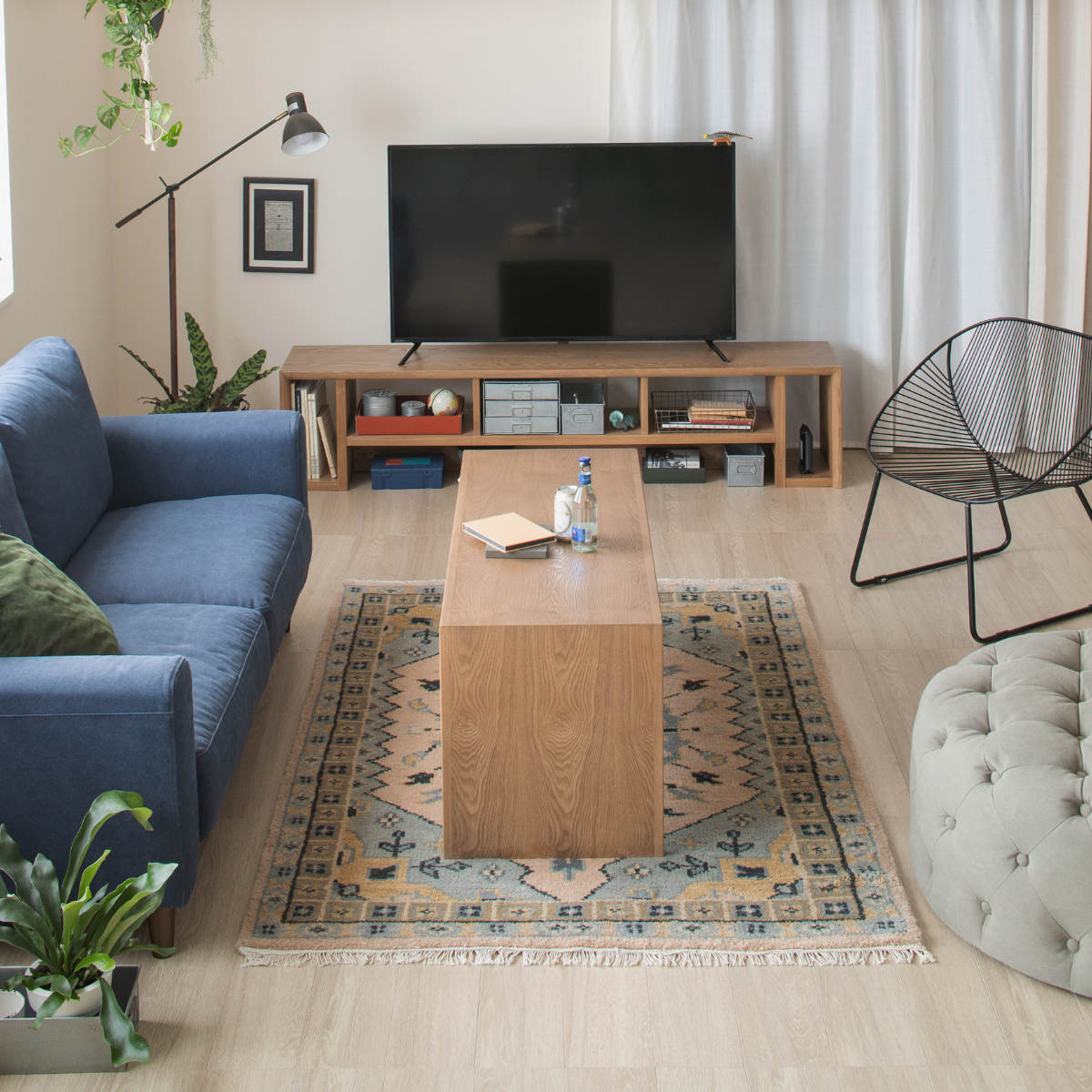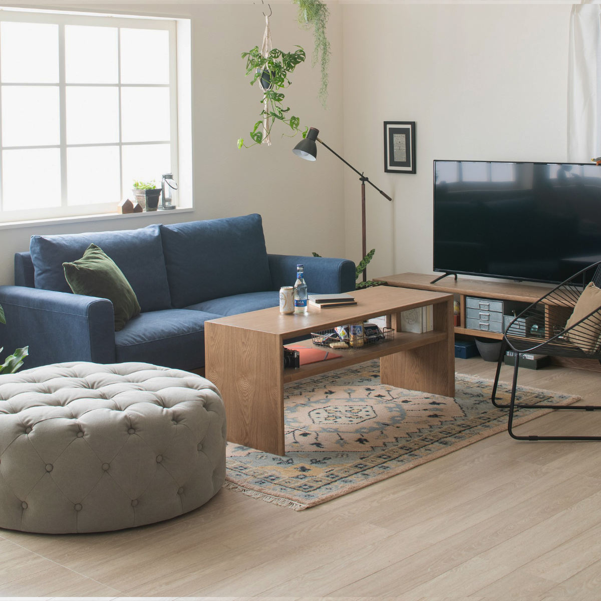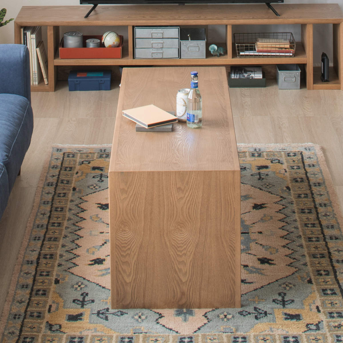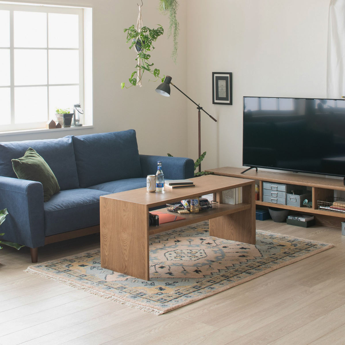無駄を削ぎ落したシンプルなデザインのテーブルです。タモの突板を使用しており、美しい木目を活かしたナチュラルなカラーが魅力的です。どんなテイストのお部屋にも合わせやすくなっております。