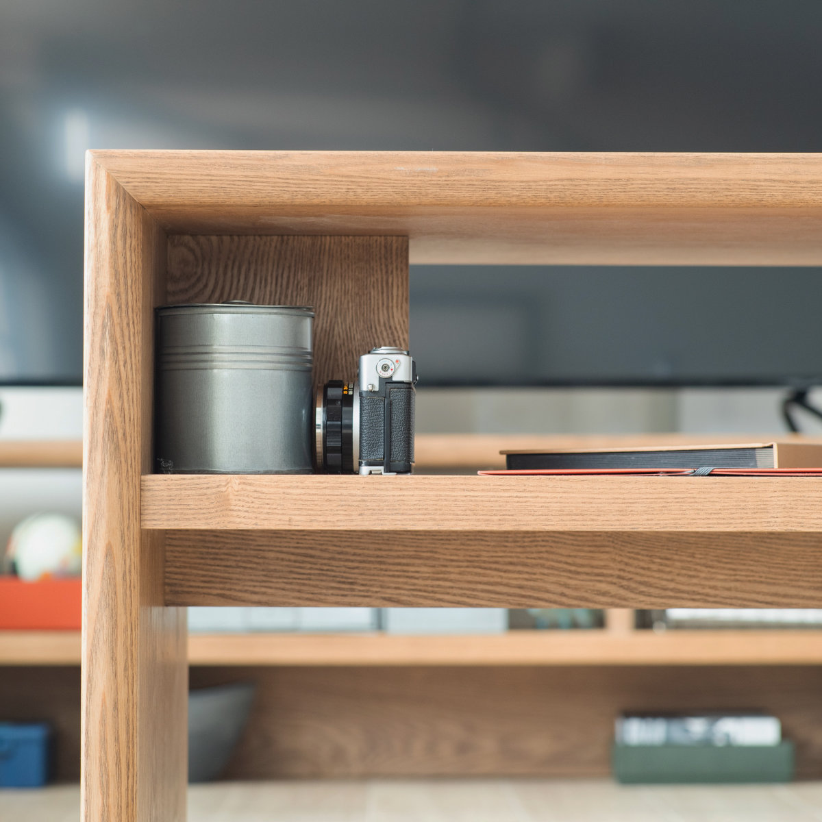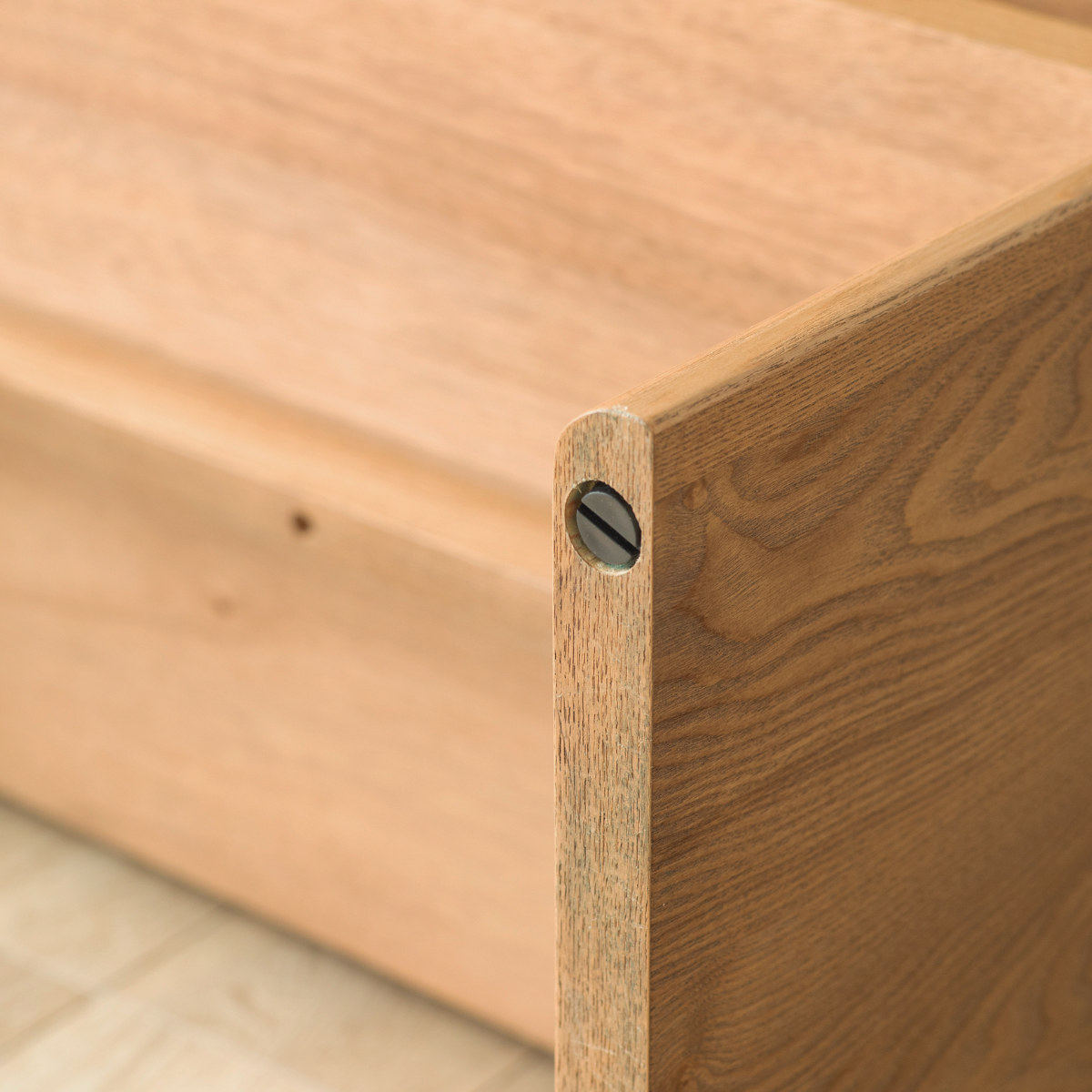 天板の角の繋ぎには小口を見せないよう留め加工が施されています。継ぎ目が目立たず、すっきりとした見た目になります。