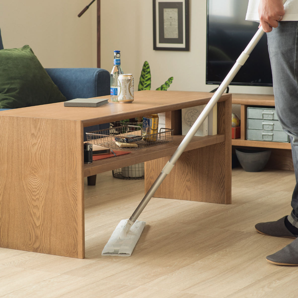 棚の位置が高めの設計のため、掃除機やモップなどがかけやすくお掃除が楽に行えます。