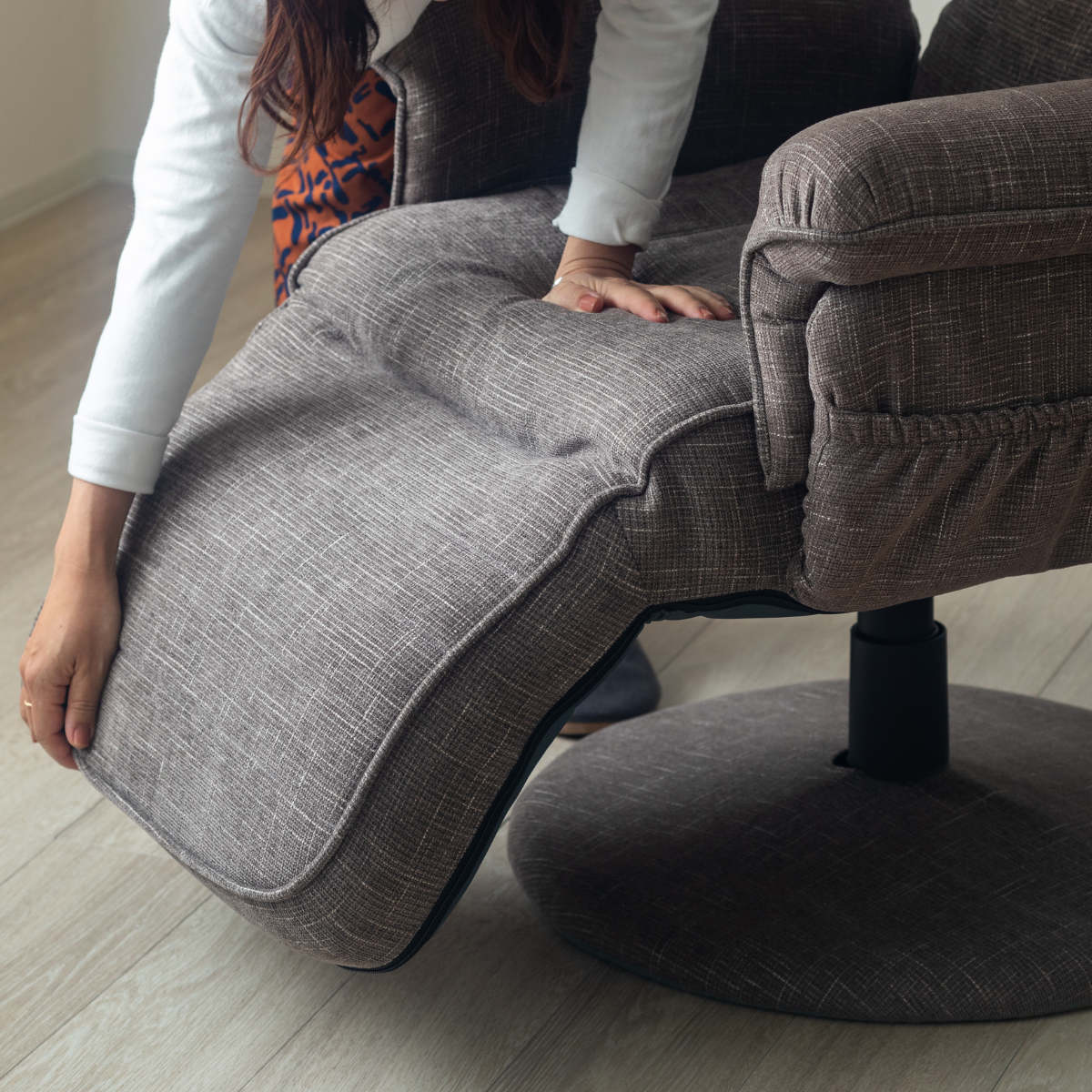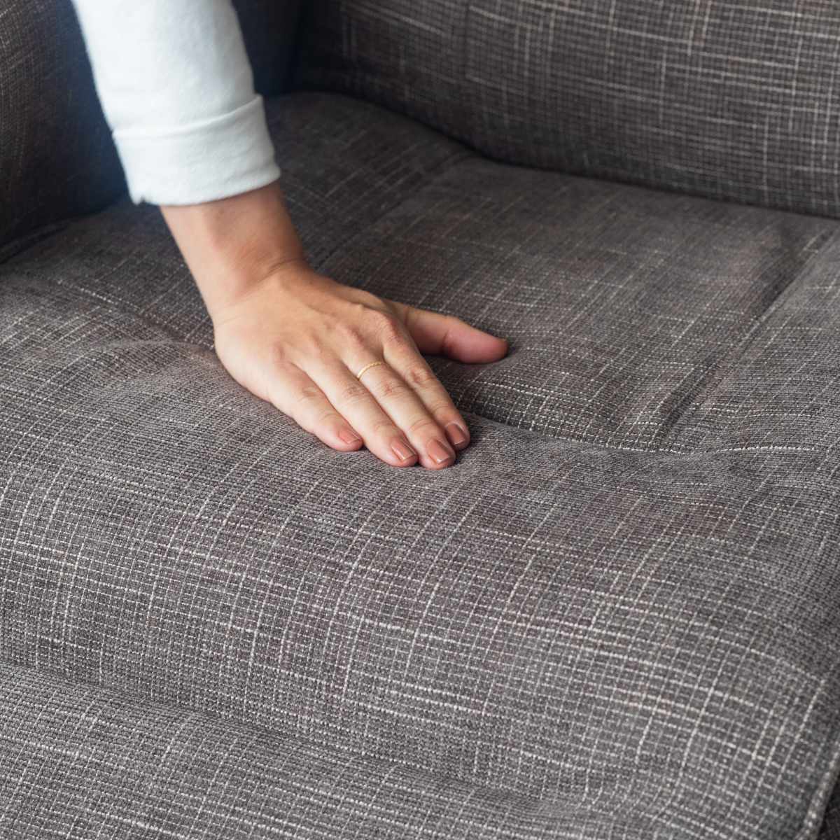 張り生地にはオールシーズン快適に使えるファブリック生地を使用し、座面にはポケットコイルを採用しています。ソファーのような座り心地で長時間座っていても疲れにくい構造です。