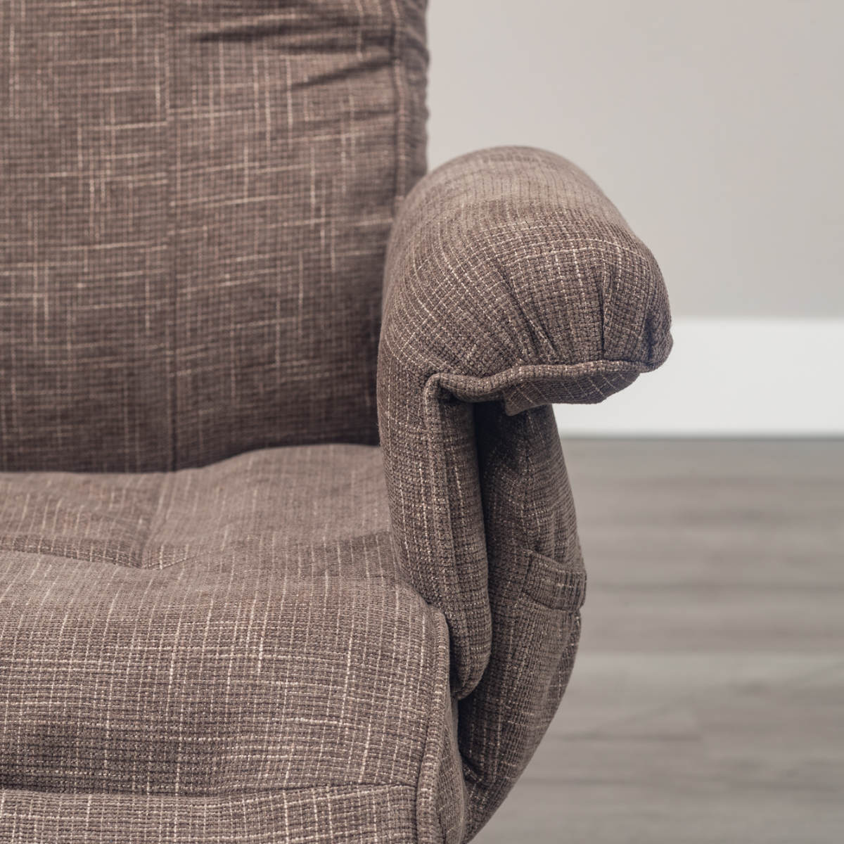 左サイドに収納ポケットが付いています。携帯やタブレット、リモコンなどを座ったままサッと手に取ることができます。