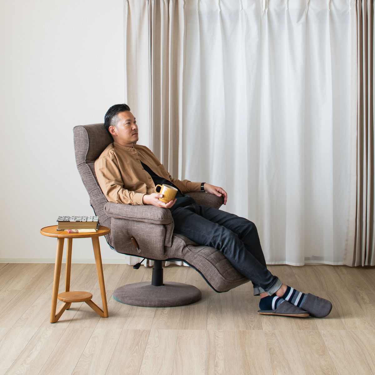 ずっと座っていたくなるハイバックタイプの高座椅子です。レバー式無段階ギア、14段階ヘッドリクライニング、3段階フットリクライニング、座面高調節、360度回転式の機能を兼ね備えています。その時の気分でお好みの角度に調節でき、リラックスした時間をお過ごしいただけます。