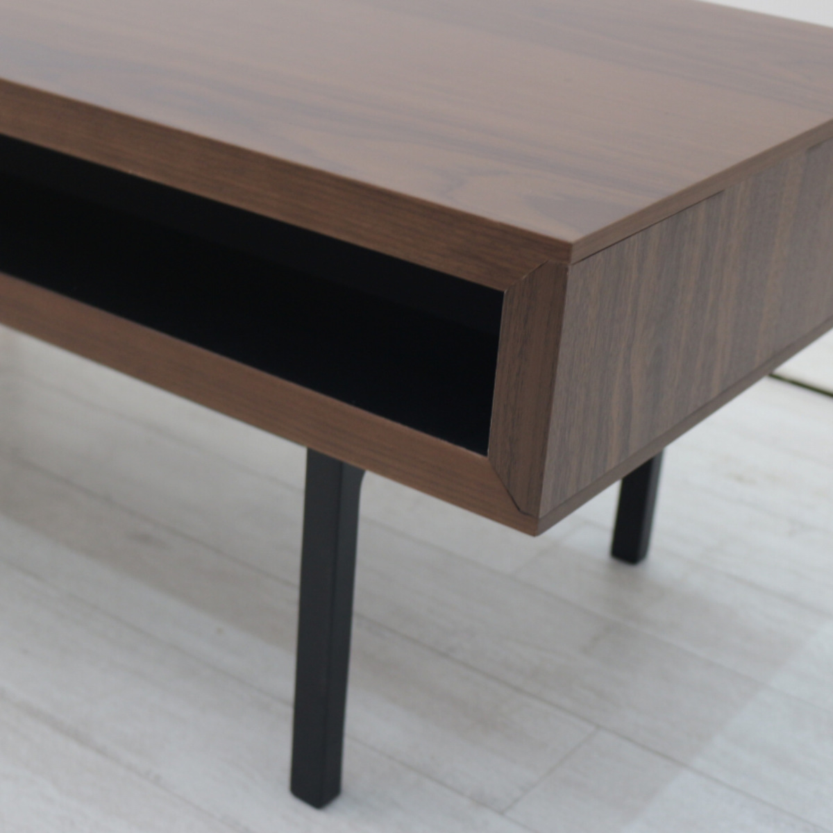 テーブルには引き出しが2杯付いています。リモコンや筆記用具、眼鏡などのテーブルの周りで使う物を収納しておくのに便利です。