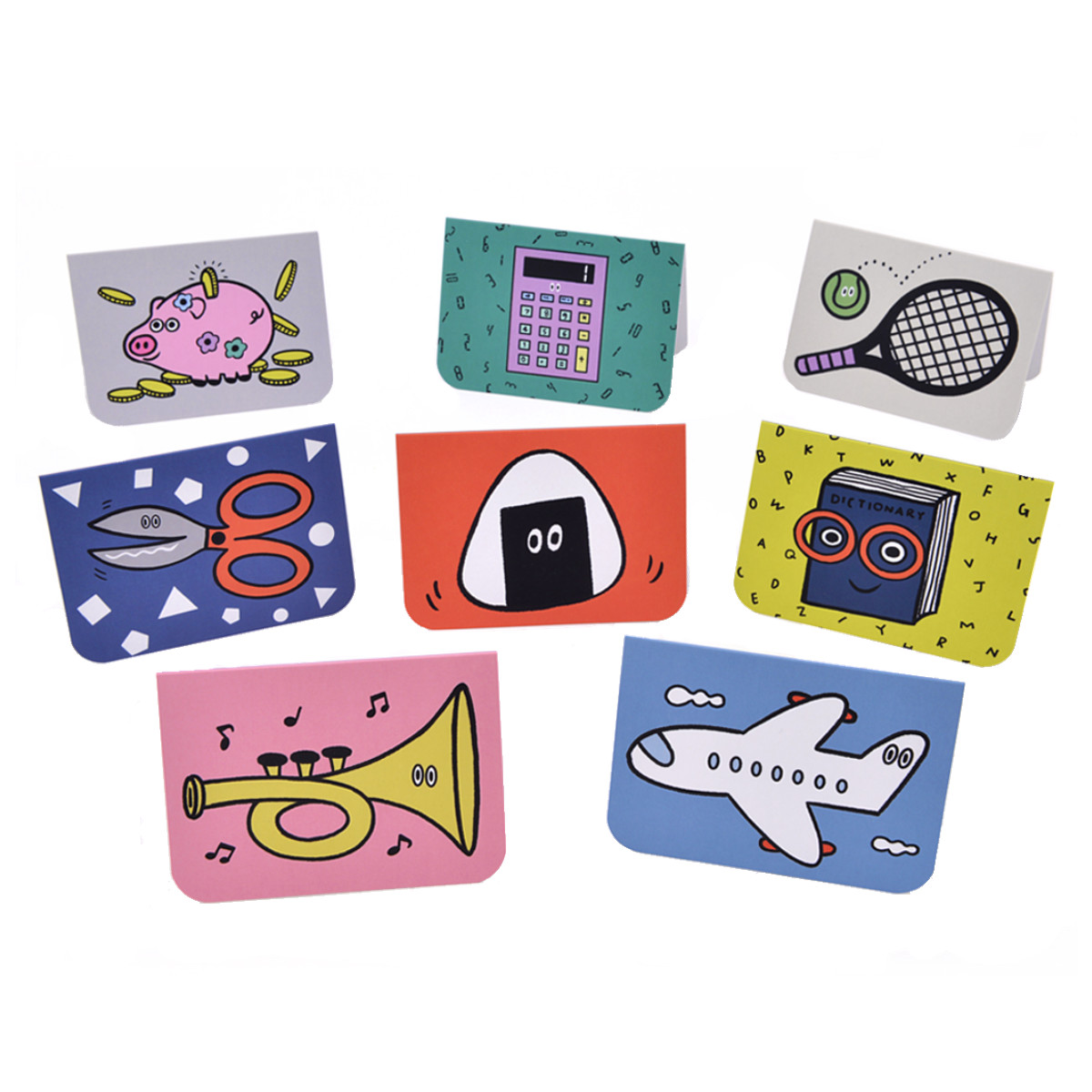 ハイハイ時期の赤ちゃんにも見えやすいように、2つ折りで立てられます。赤ちゃんが触っても安心な4つ角を丸くした形状のカードです。