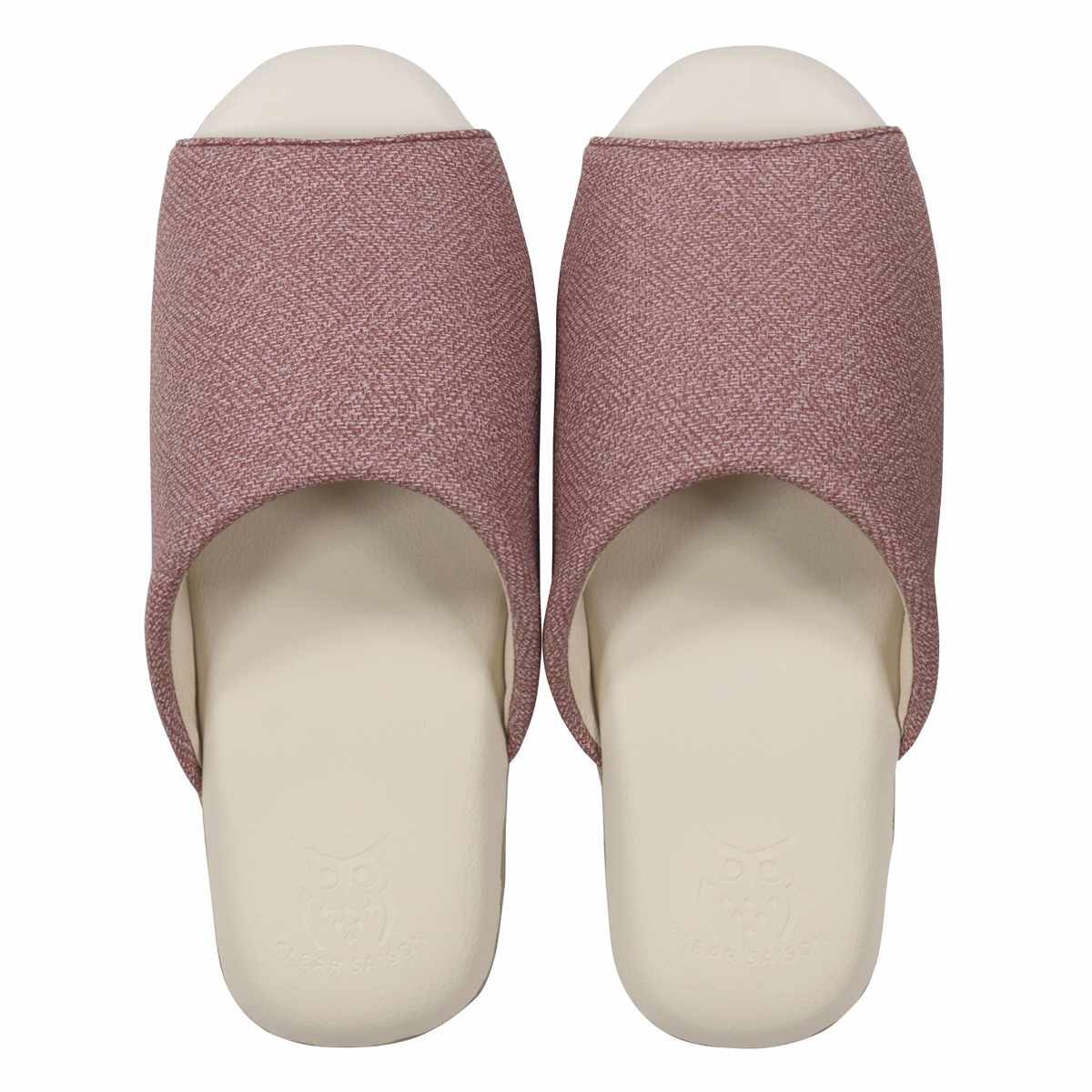 中板には滑りにくい質感のPVCを使っておりズレにくく、ふっくらとしたウレタン入りで足に優しい履き心地です。底は滑りにくくパタパタ音がしにくい素材を使用。集合住宅にお住まいの方にもおすすめです。