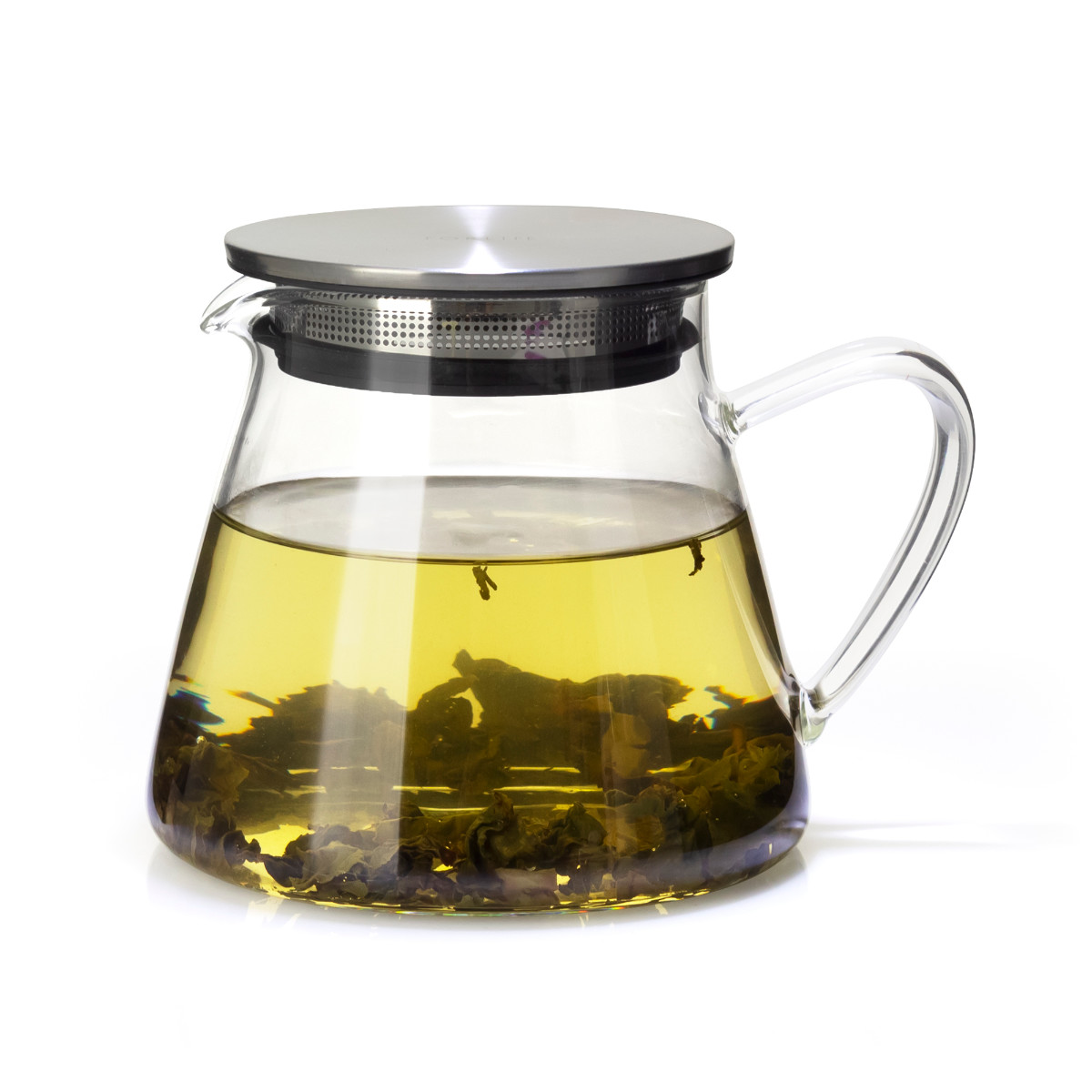 富士山を連想させるシャープなデザインのティーポットです。透明な耐熱ガラス製なので、茶葉がゆったりと広がるシャンピング現象を目でも楽しむ事ができます。ポットの中で茶葉が自由に完全に広がり、お茶の風味と香りを100%抽出できます。