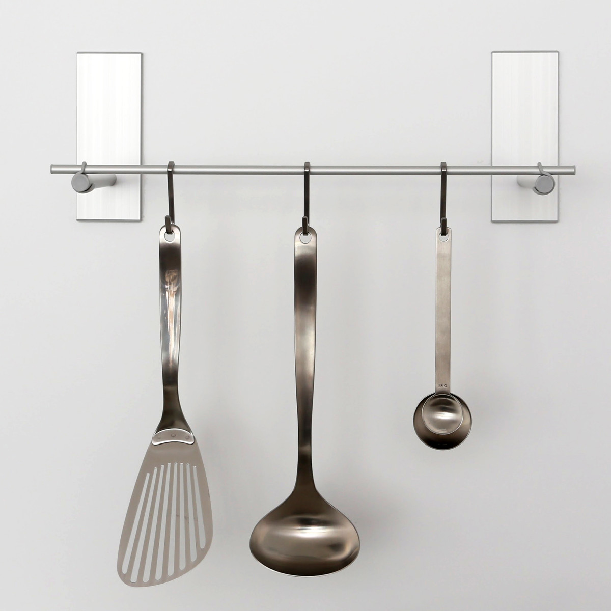 強力マグネットで総荷重1.5kgまで吊るせます。お玉やフライパンなどのよく使うキッチンツールを引っ掛けて収納でき、必要なときにサッと手にとれるので便利です。