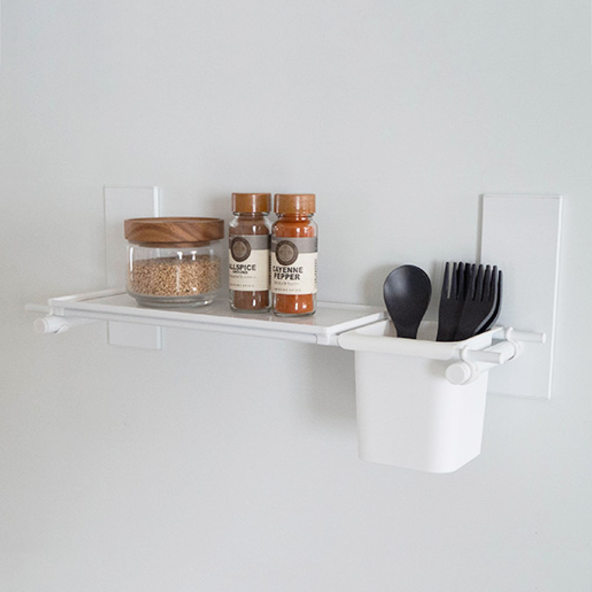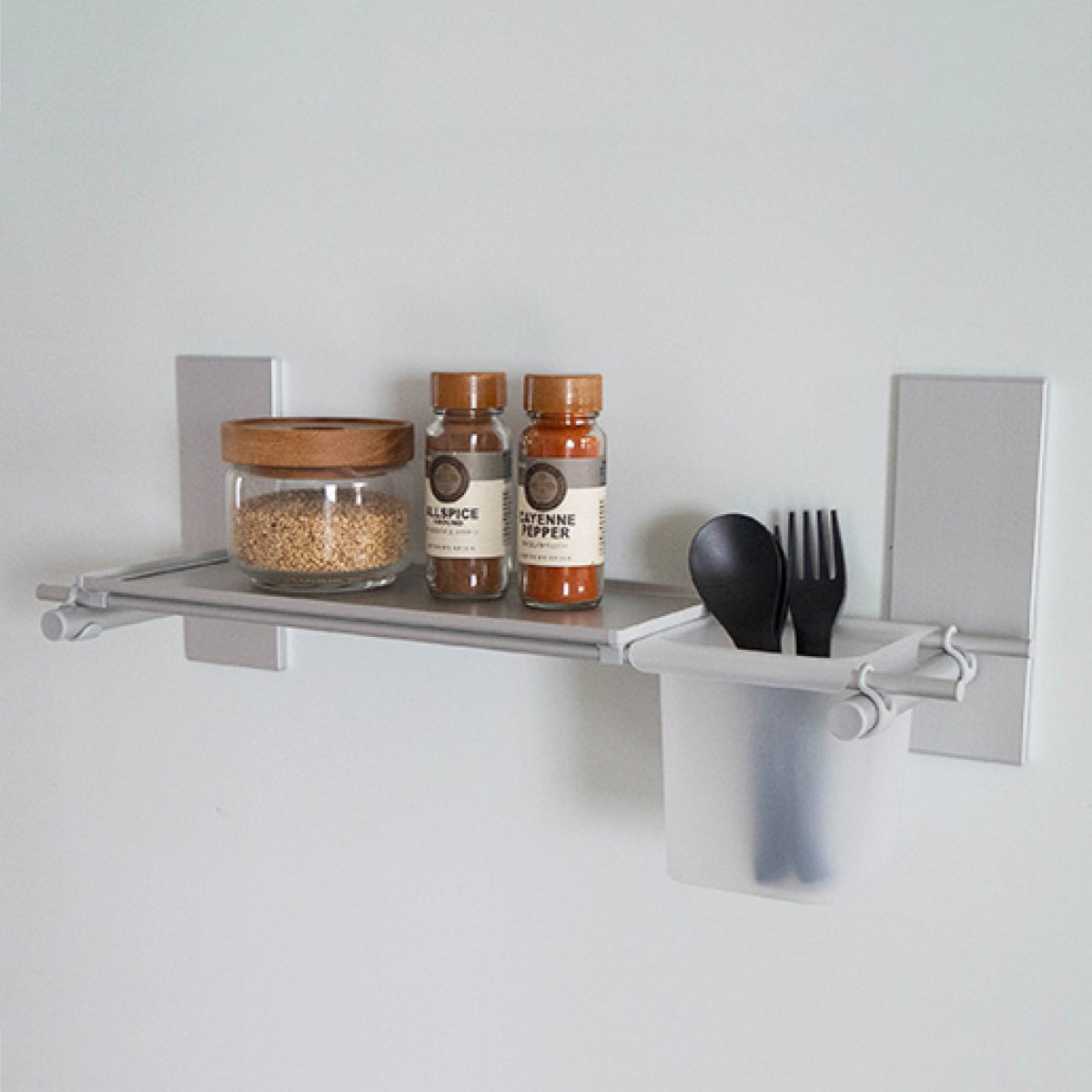壁面を利用して調味料やキッチン小物を収納できる、ポケット&トレイのセットです。設置が簡単なマグネット式なので、使いたい位置にいつでも変更でき、使い勝手抜群のキッチンに早変わりします。