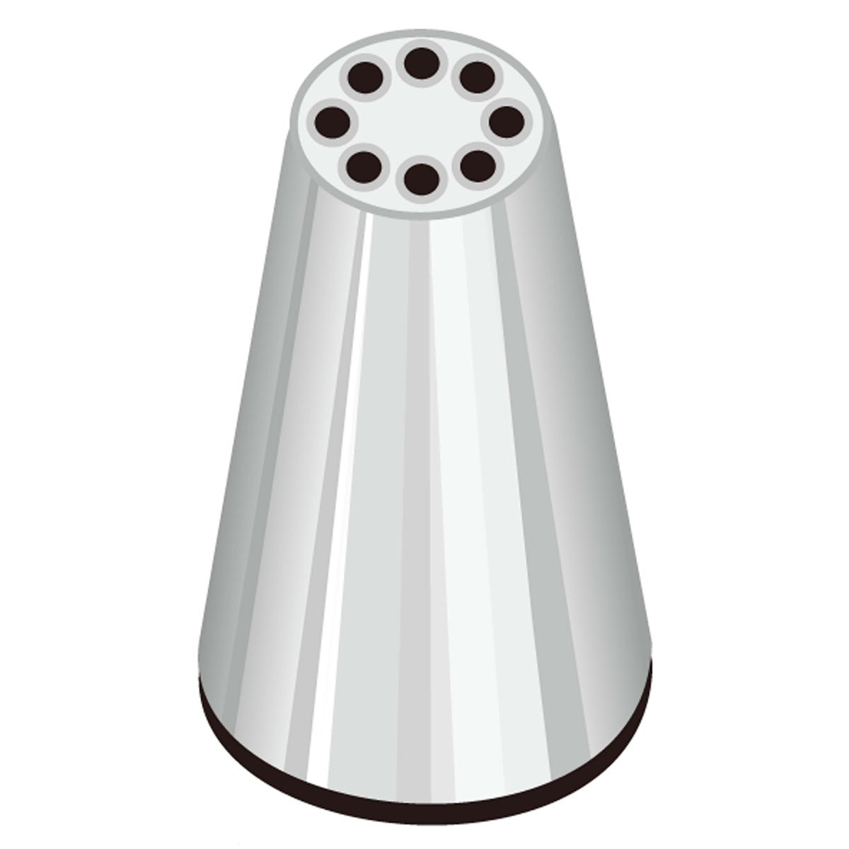 小さな穴が8ケあいている絞り口金です。生クリームなどで細いクリームを一度にたくさん絞るのに便利に使えます。