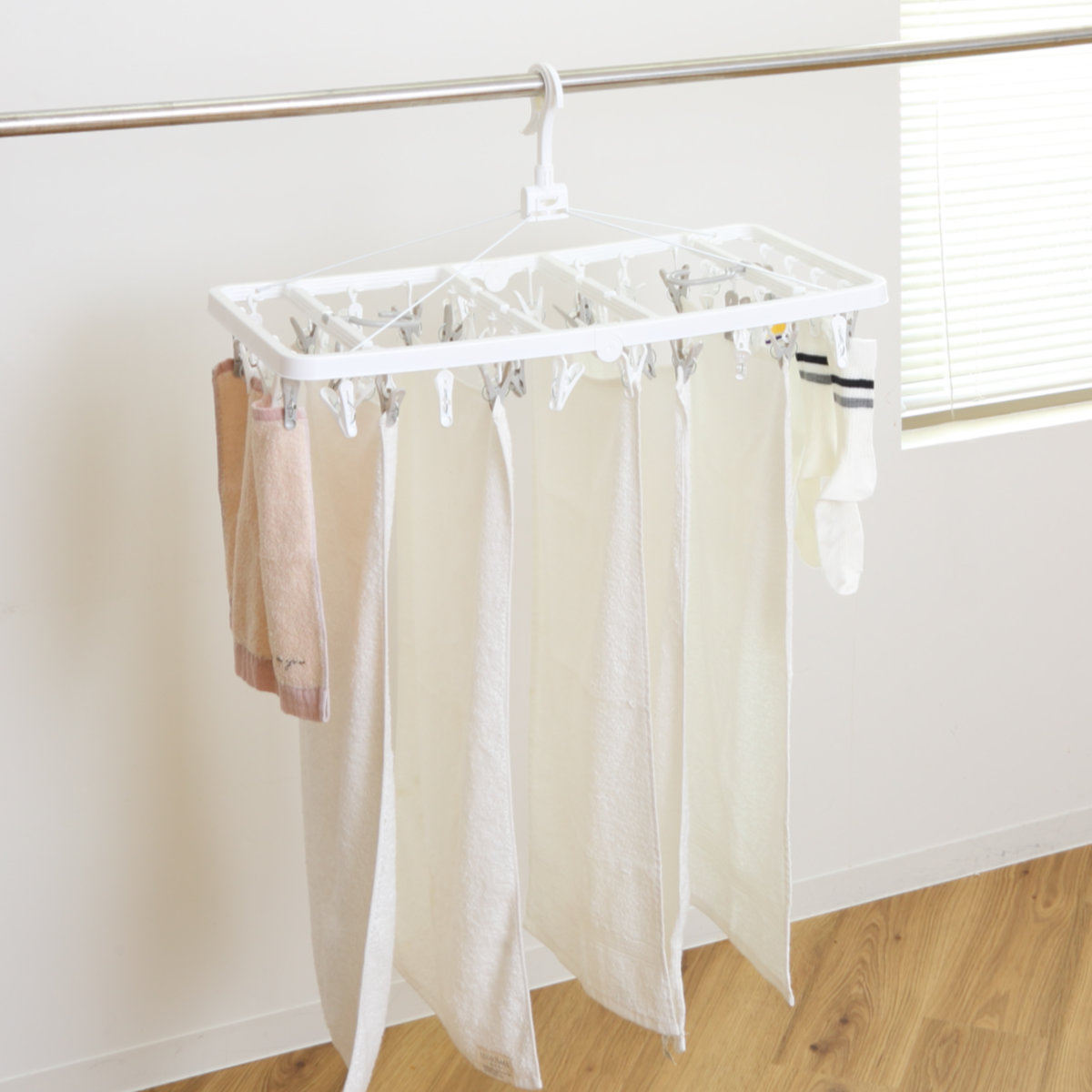 面倒な洗濯物の取り込みが、引っ張るだけで完了する画期的な角ハンガーです。洗濯物がたくさん干せるピンチ42個タイプです。