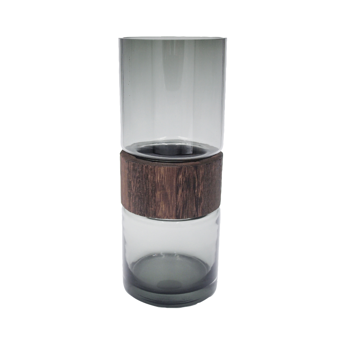 ●アンティークカラーの木とスモーク色のガラスの異素材がオシャレなガラスベースです。