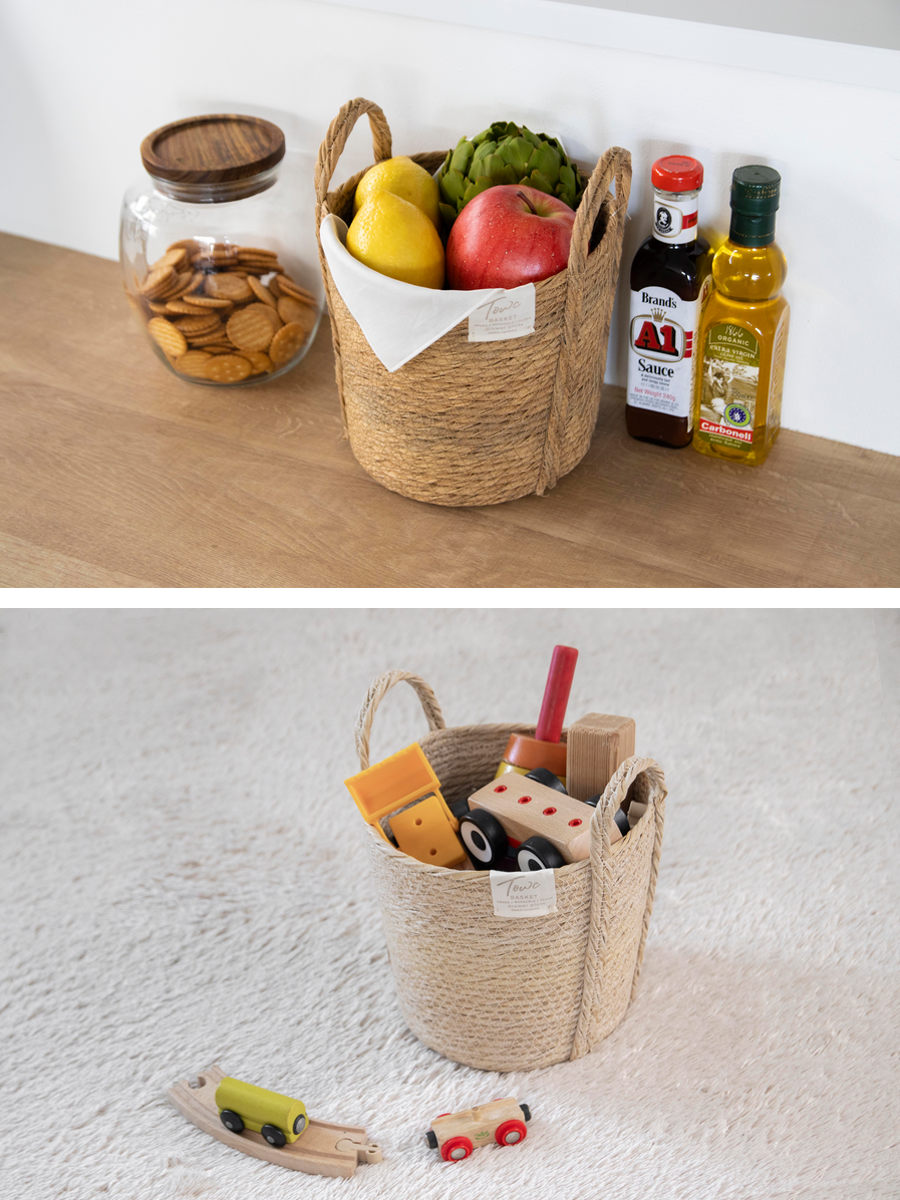 Towcシリーズのバスケットは、水洗いも出来る丈夫な素材で、見た目だけでなく使い勝手も抜群。生活感をさりげなく隠しながら、ナチュラルな雰囲気を演出します。シリーズで揃えれば、統一感のあるスッキリとした空間に仕上がります。