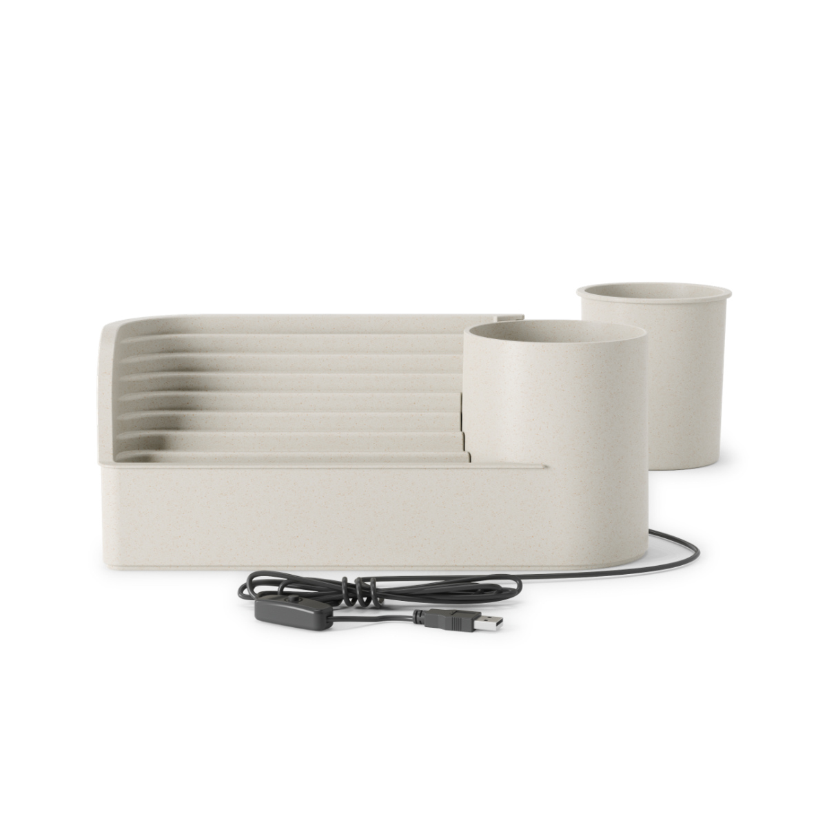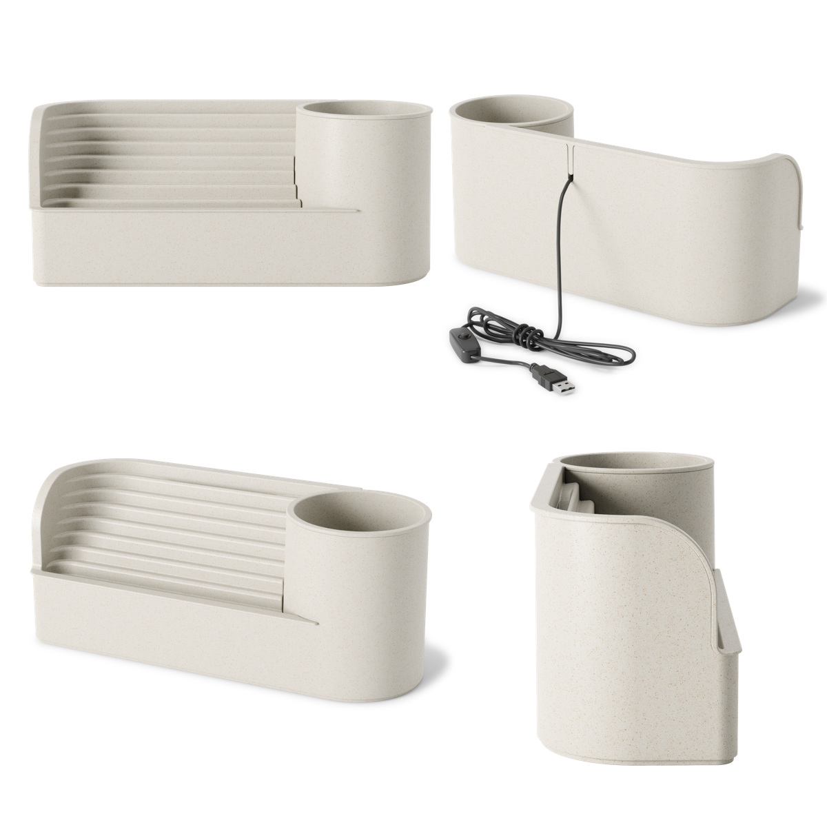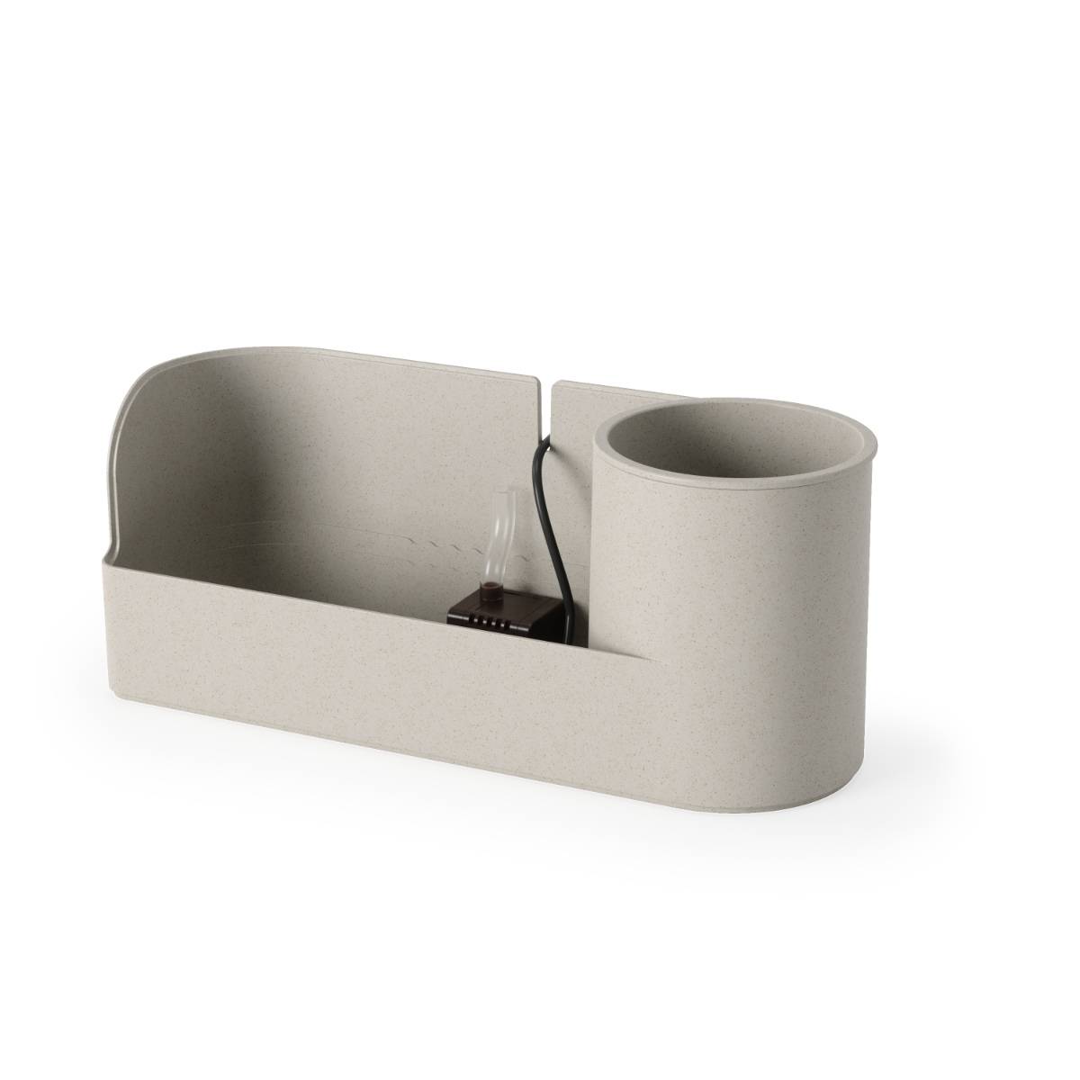 モダンなスタイルと利便性がリラクゼーションと融合した、空間に癒しを与える卓上噴水です。空気の質を改善し、加湿器としても使えて、リビングやデスクスペース、玄関などに最適です。また、筒形の収納スペースがついており、ちょっとした植物や文房具などの収納もできます。