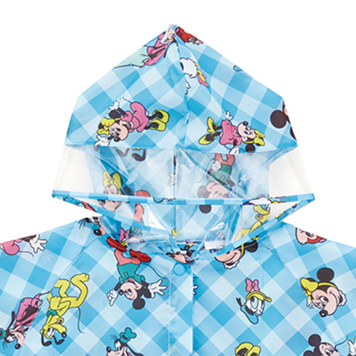 後ろのボタンを外すと幅が広がるので、ランドセルやリュックを背負ったままかぶることができます。雨の日の通園通学に心強いレインコートです。